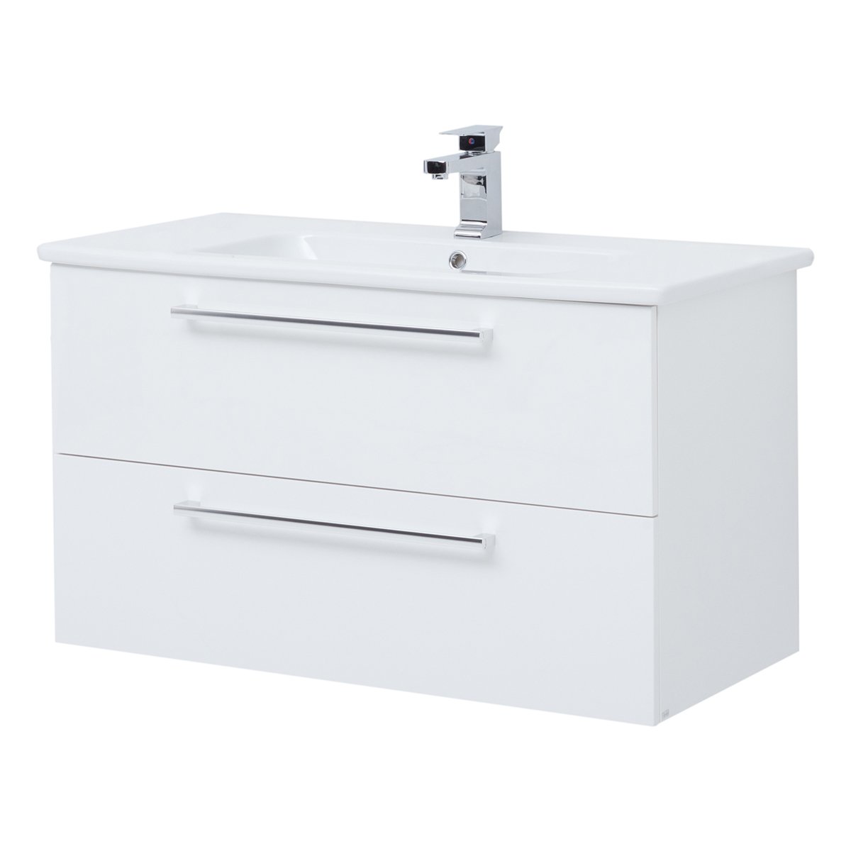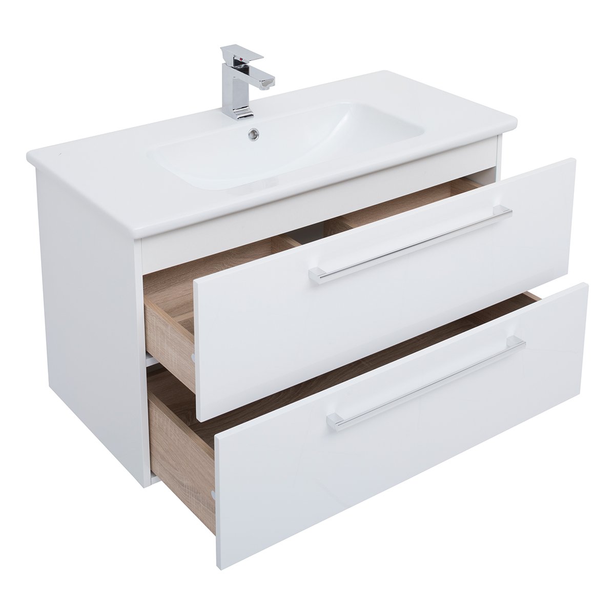 Тумба GIO, 80 см, подвесная, 2 ящика, белый глянец