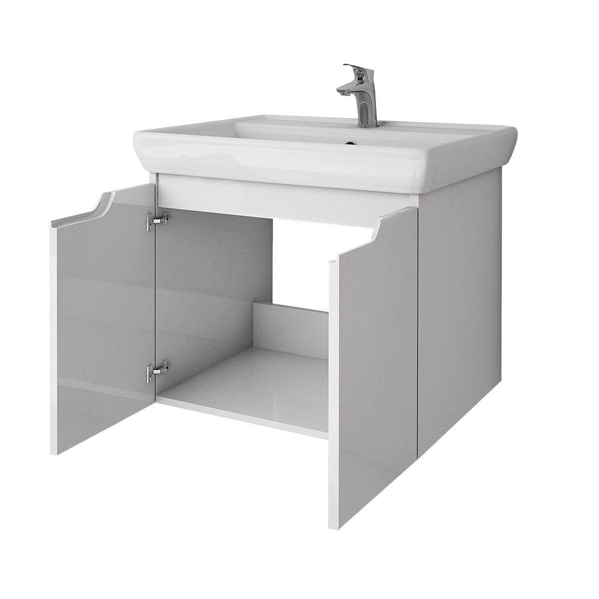 Тумба Q (D), 60 см, подвесная, 2 дверцы, белый глянец