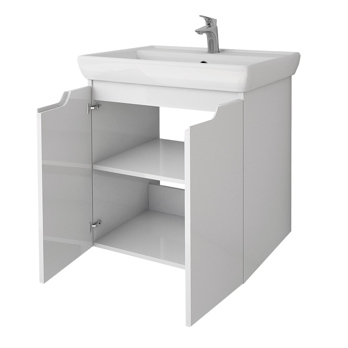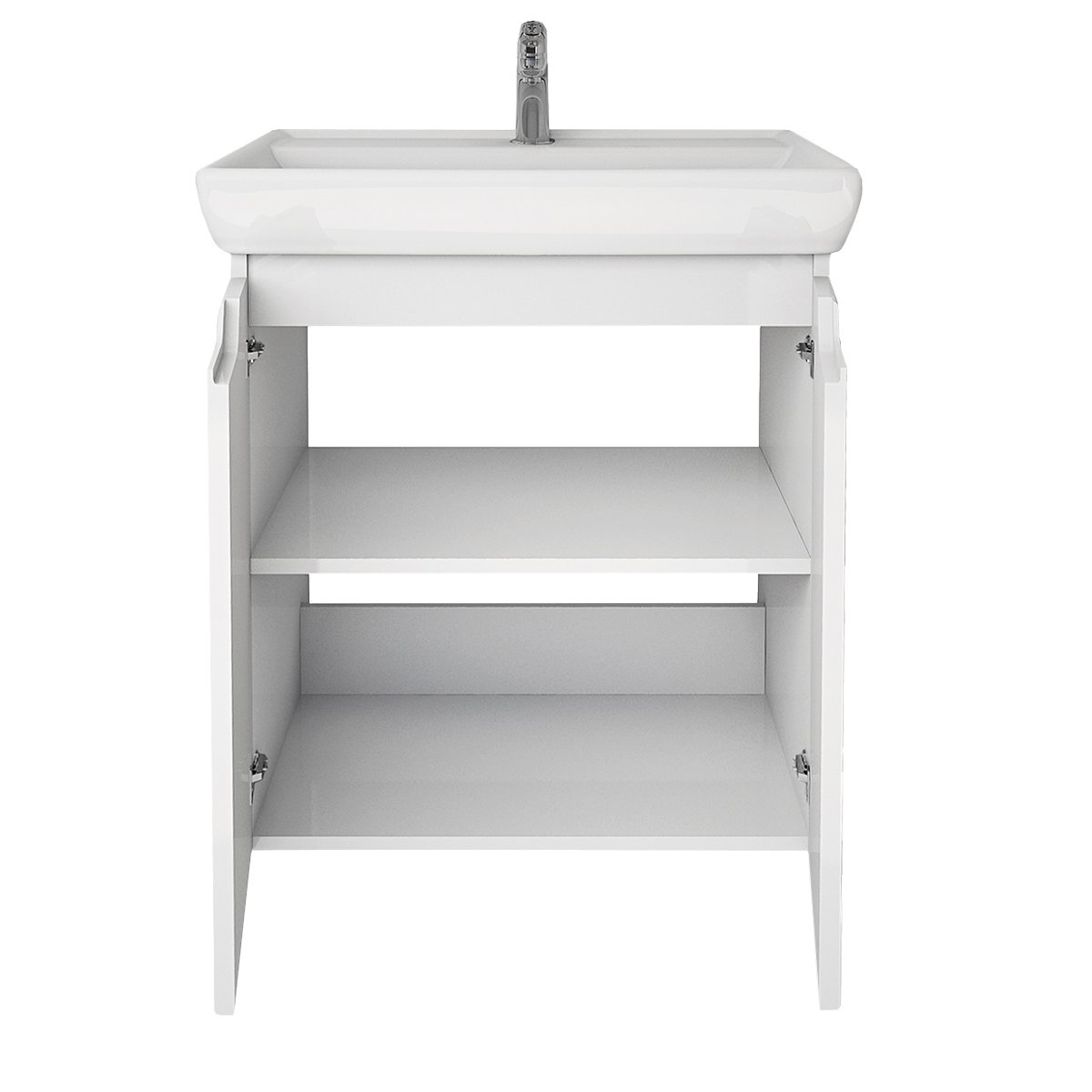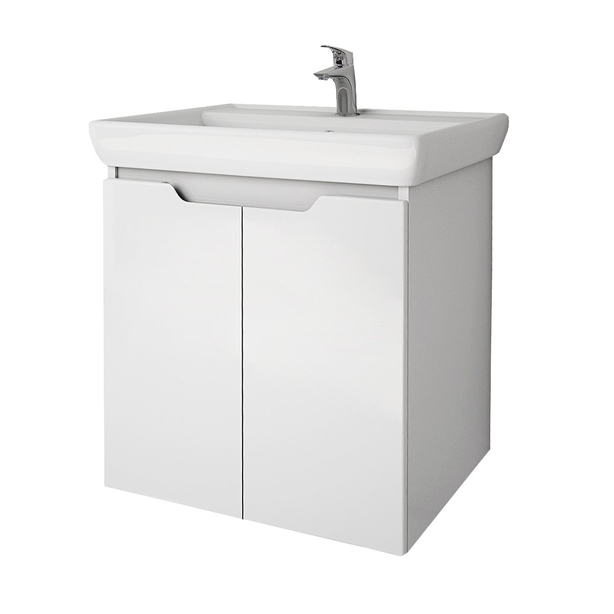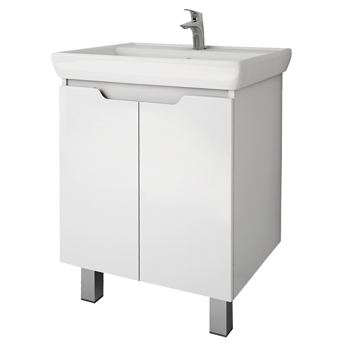 Тумба Q PLUS (D), 60 см, подвесная/напольная, 2 дверцы, с опорами, белый глянец