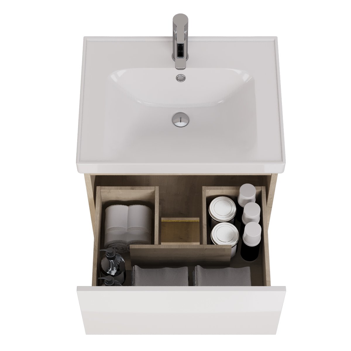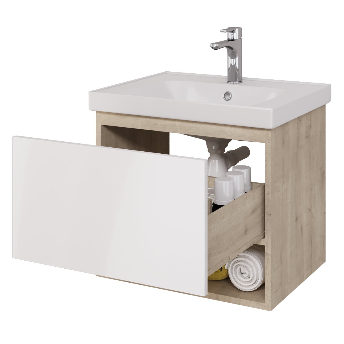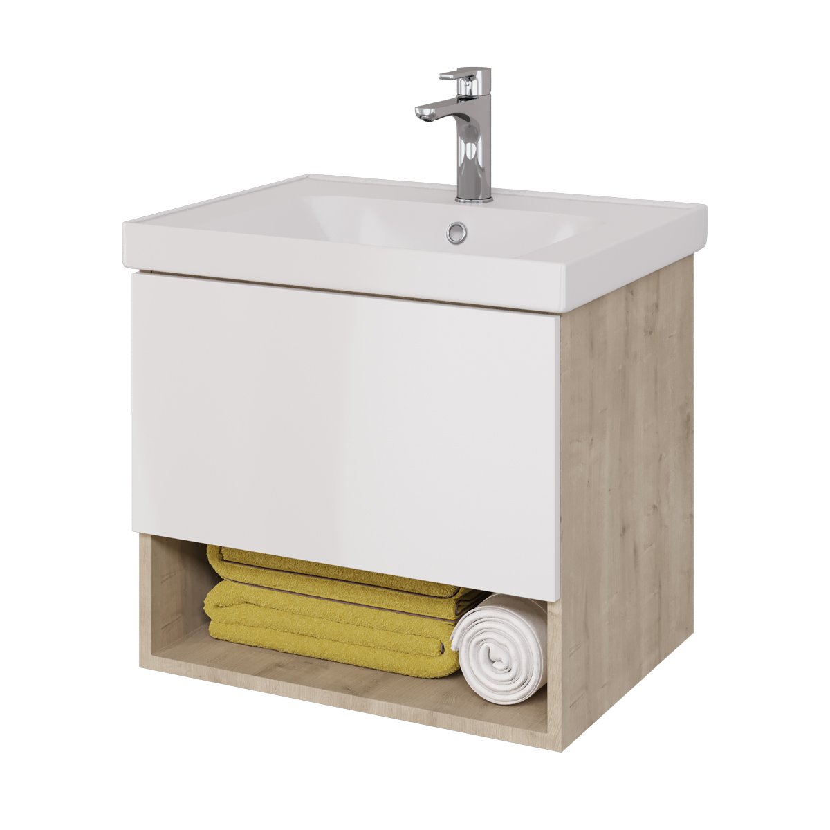 Тумба PERFECTO, 60 см, подвесная, 1 ящик, дуб эврика/белый глянец