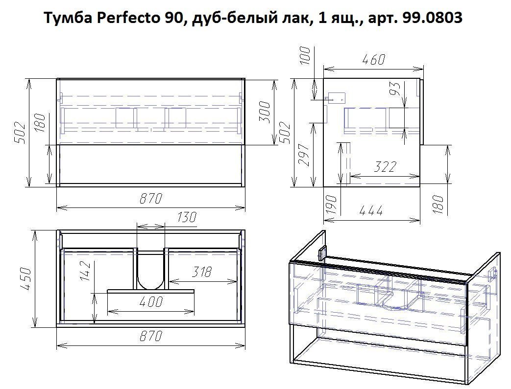 | Название: | Тумба PERFECTO, 90 см, подвесная, 1 ящик, дуб эврика/белый глянец | ||
