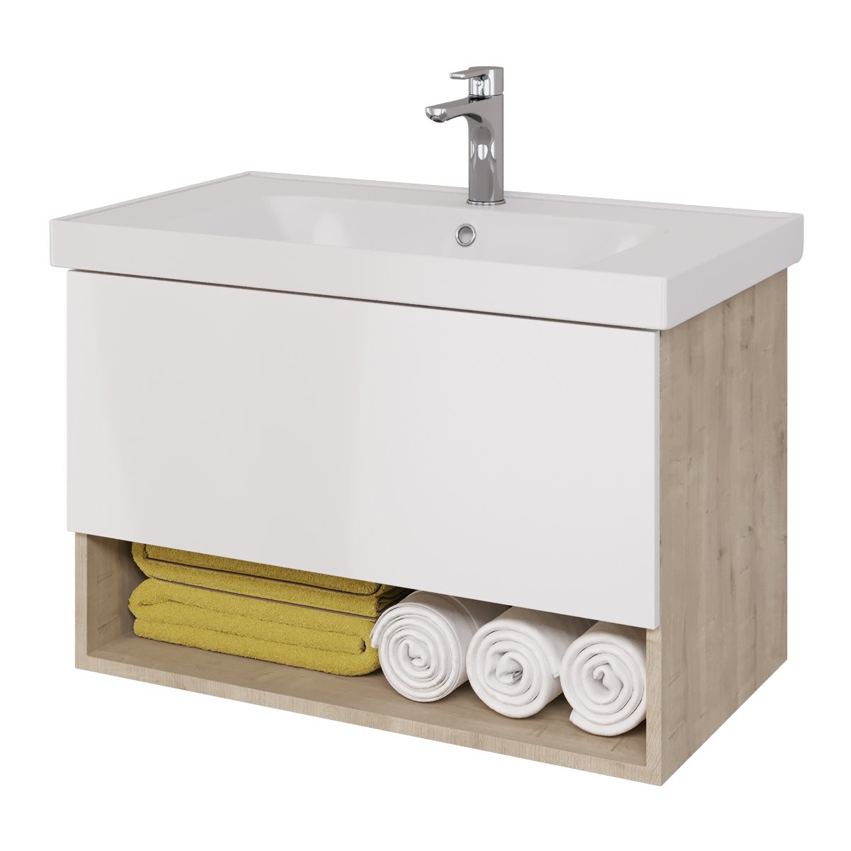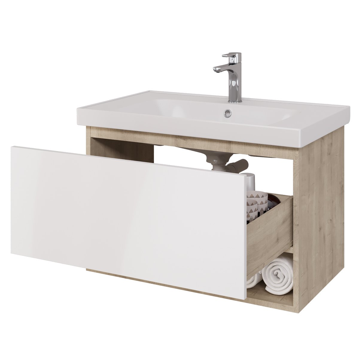 Тумба PERFECTO, 70 см, подвесная, 1 ящик, дуб эврика/белый глянец