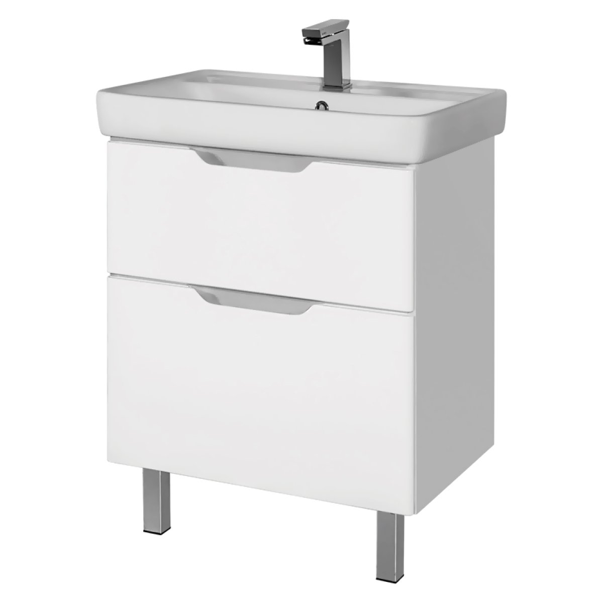 Тумба Q PLUS, 60 см, подвесная/напольная, 2 ящика, с опорами, белый глянец