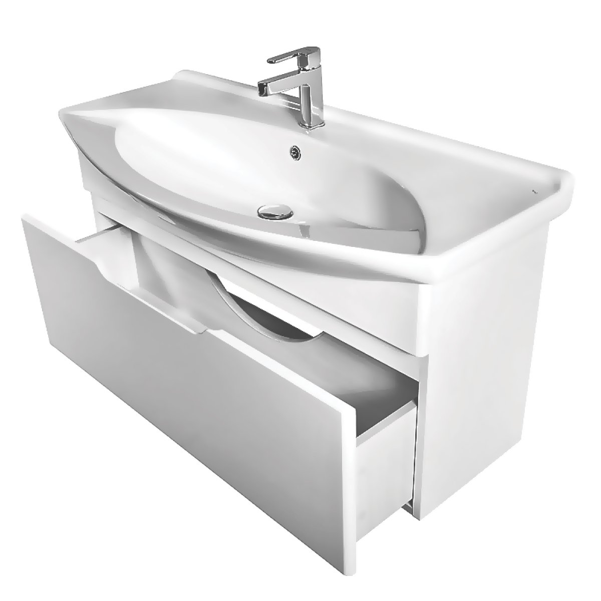 Тумба LAGUNA, 105 см, подвесная, 1 ящик, белый глянец