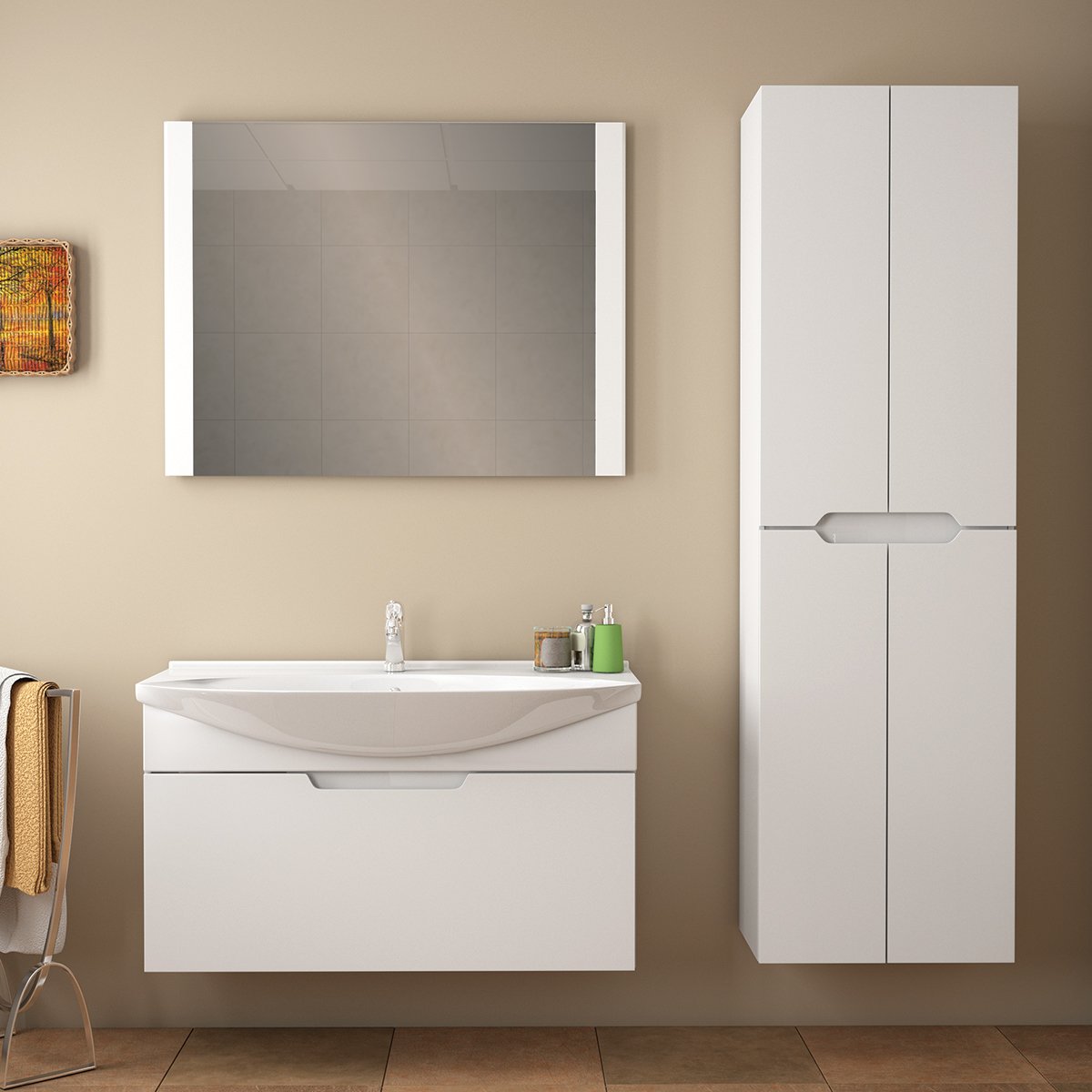 Тумба LAGUNA, 85 см, подвесная, 1 ящик, белый глянец