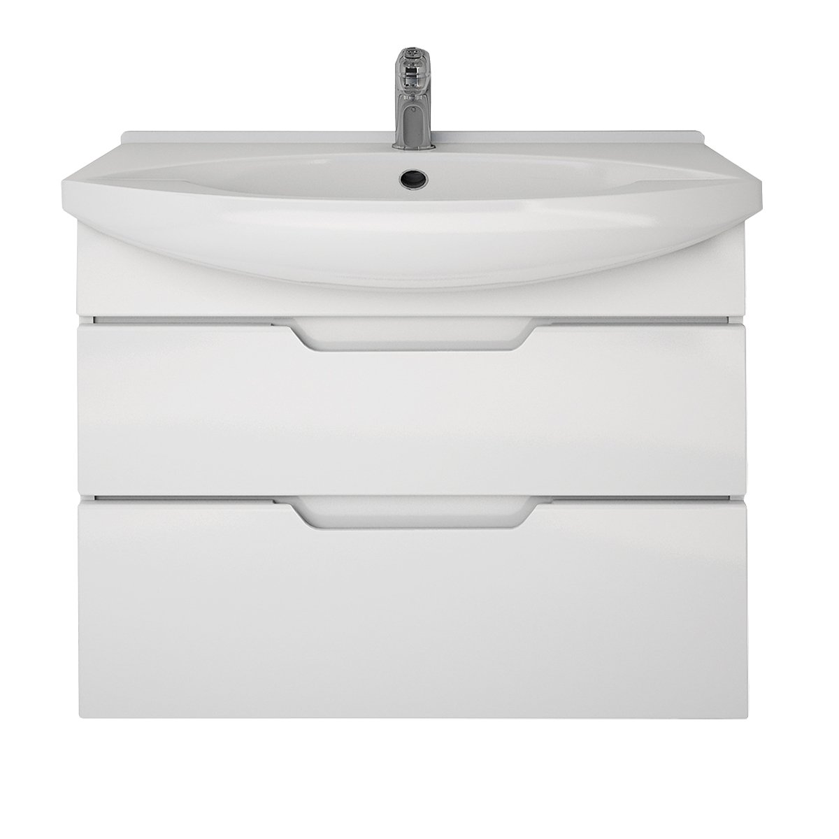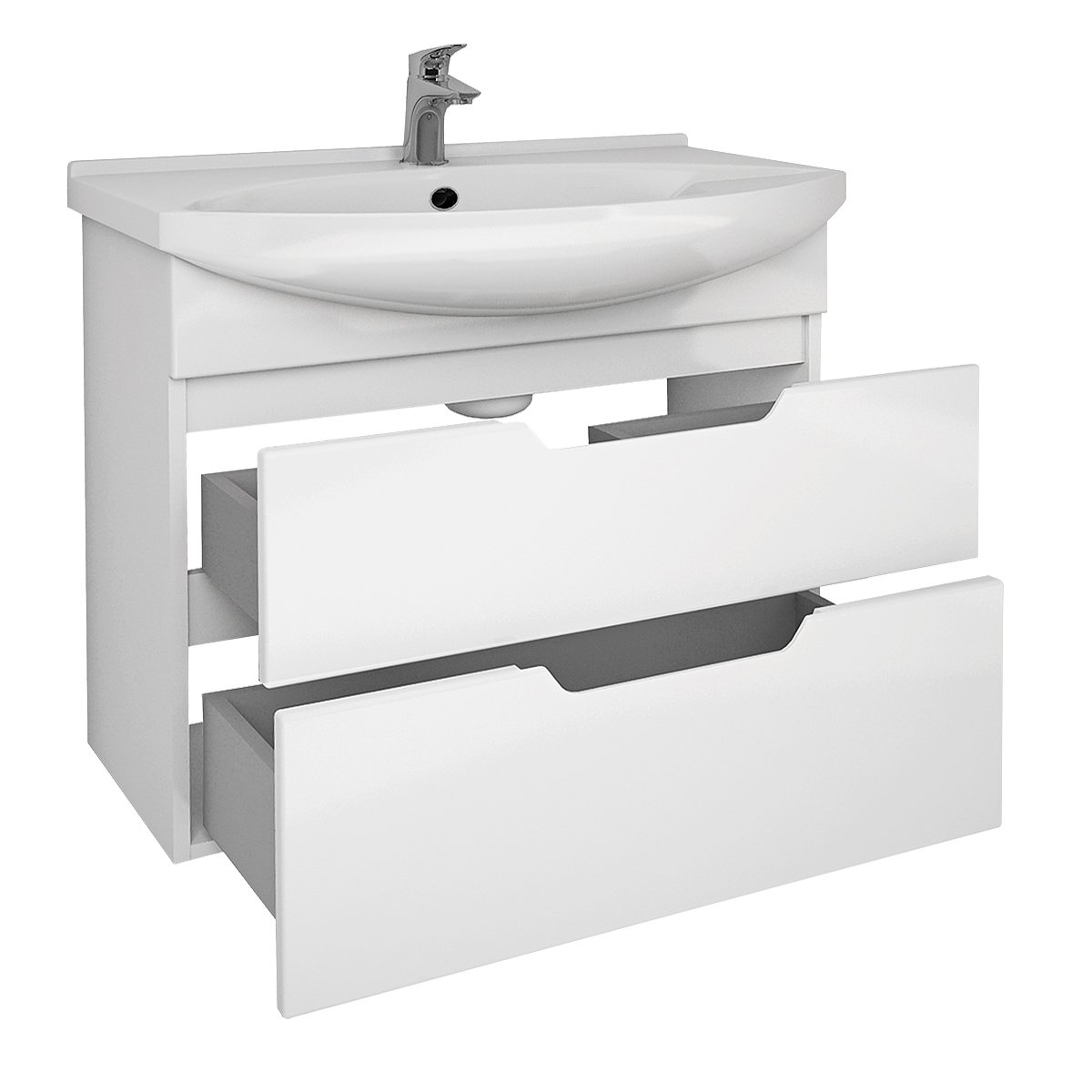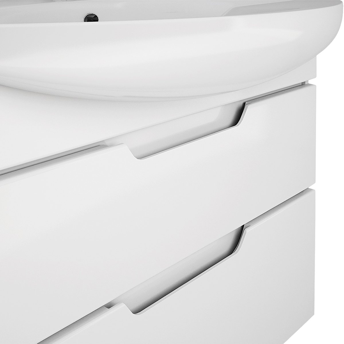 Тумба LAGUNA PLUS, 75 см, подвесная/напольная, 2 ящика, с опорами, белый глянец