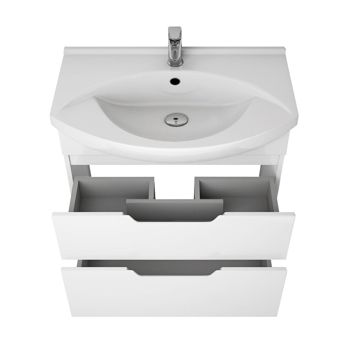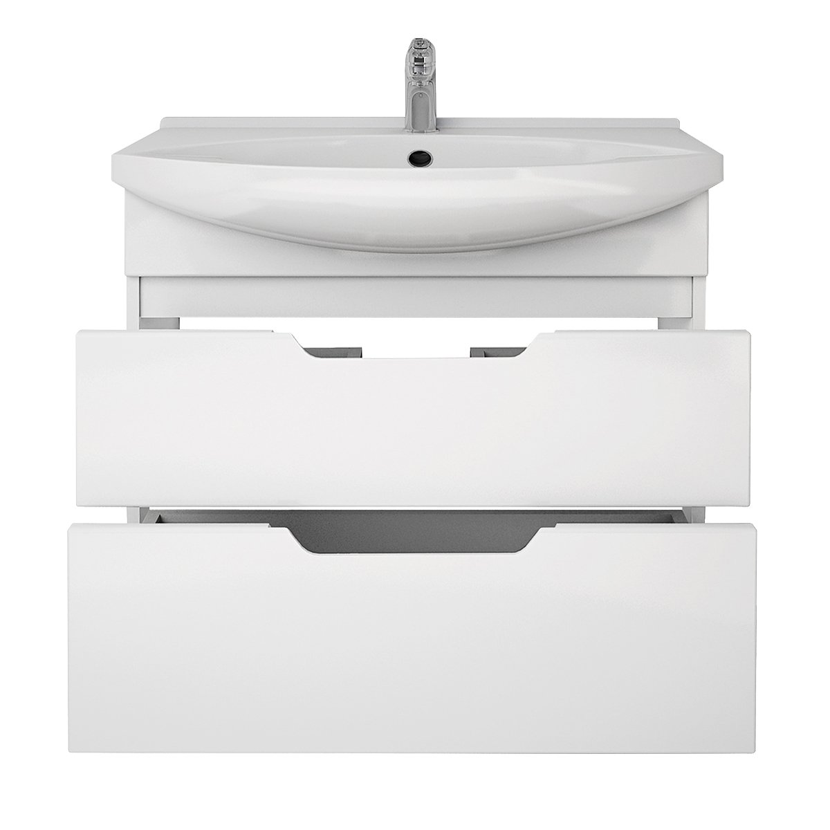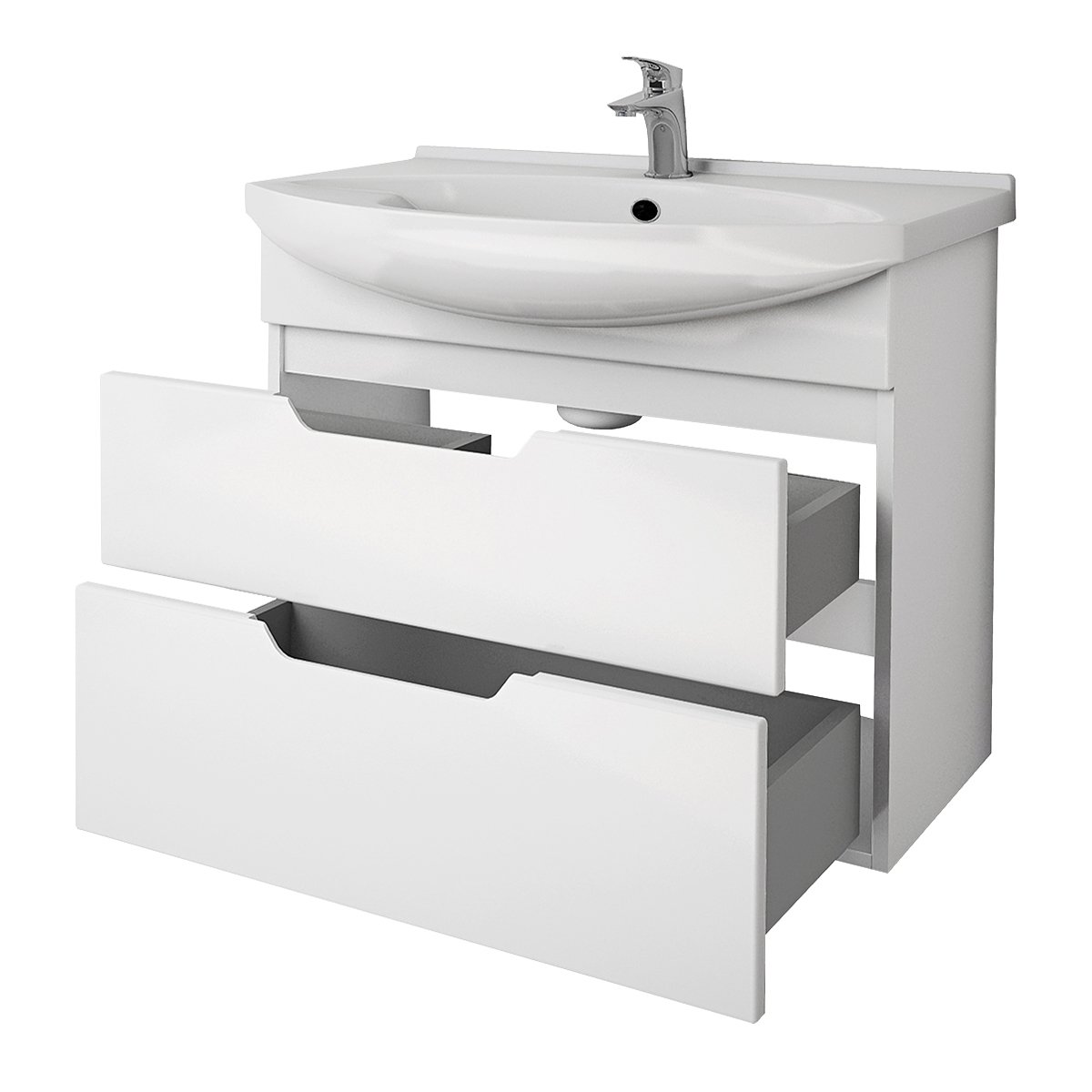 Тумба LAGUNA PLUS, 75 см, подвесная/напольная, 2 ящика, с опорами, белый глянец