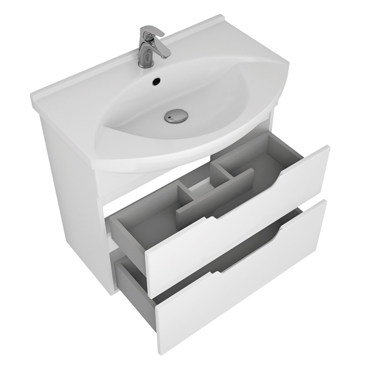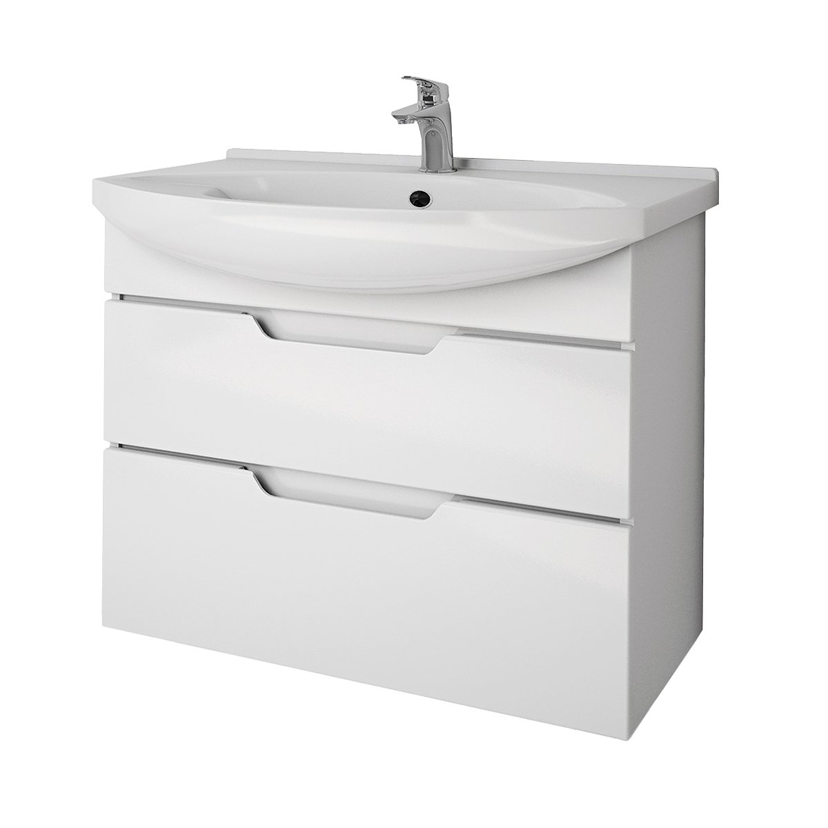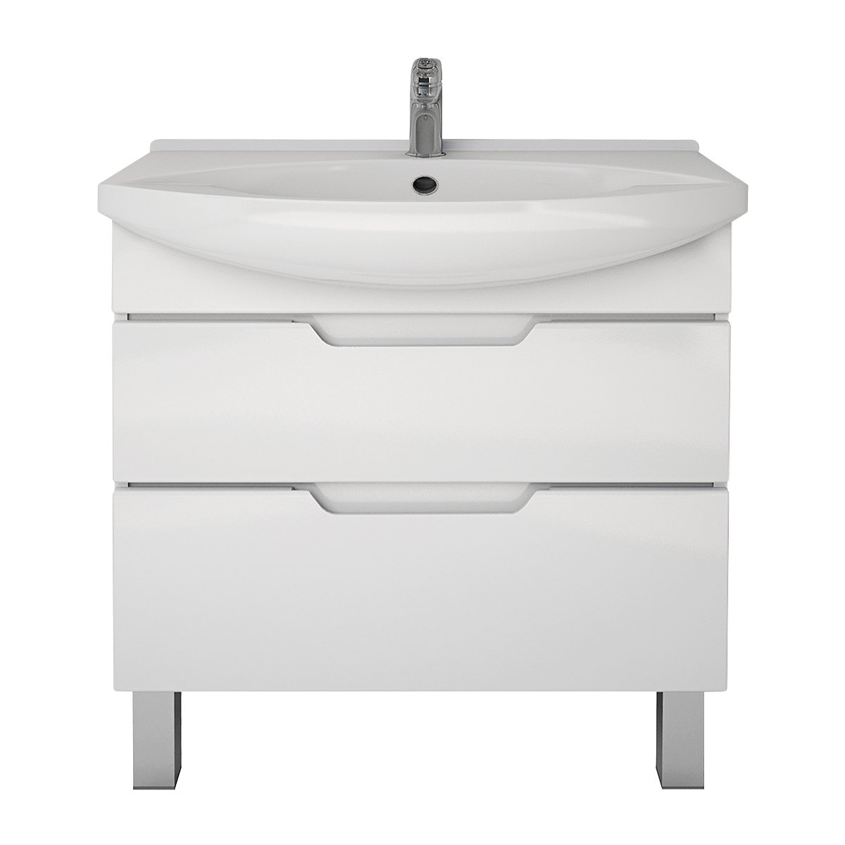 Тумба LAGUNA PLUS, 85 см, подвесная/напольная, 2 ящика, с опорами, белый глянец