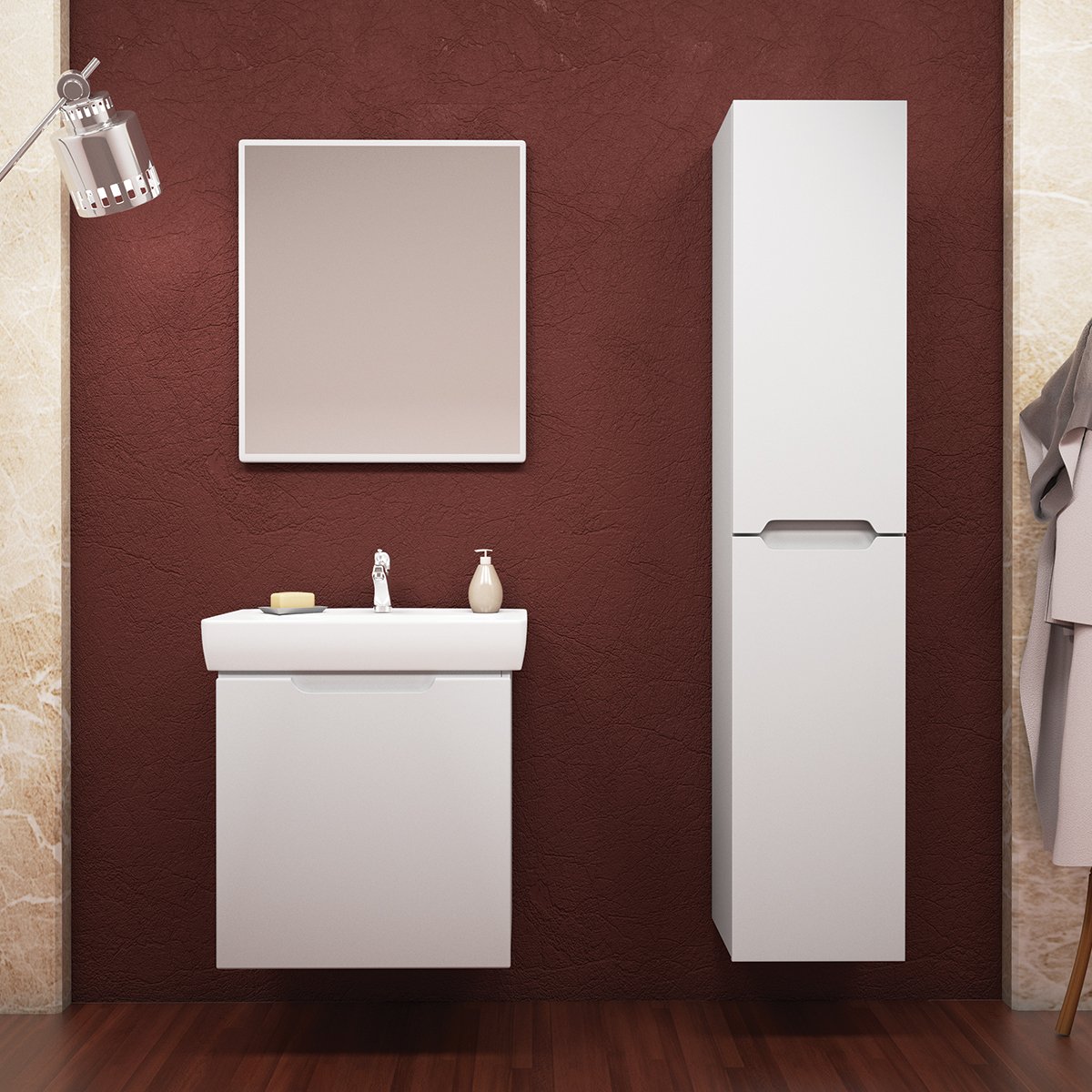 Тумба MINI, 60 см, подвесная/напольная, 2 дверцы, белый глянец