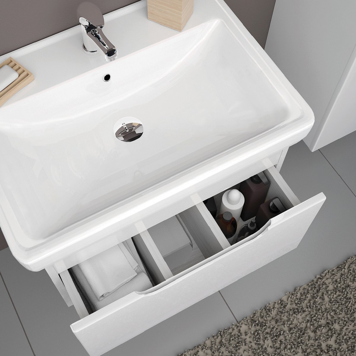 Тумба TINY, 60 см, подвесная, 1 ящик, белый глянец
