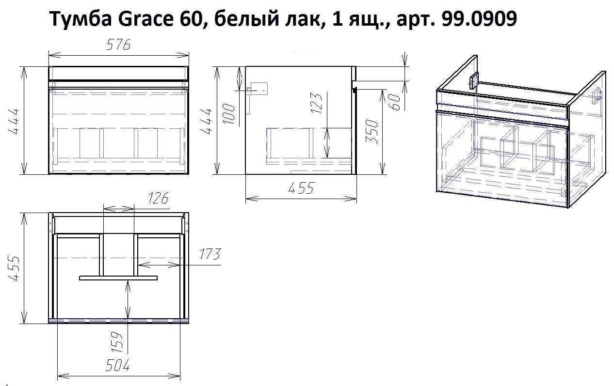 Тумба GRACEТумба GRACE, 60 см, подвесная, 1 ящик, белый глянец