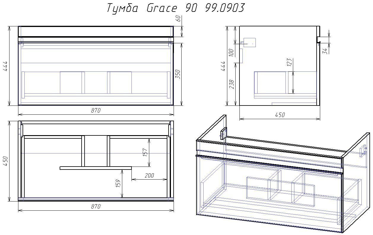 | Название: | Тумба GRACE, 90 см, подвесная, 1 ящик, белый глянец | ||
