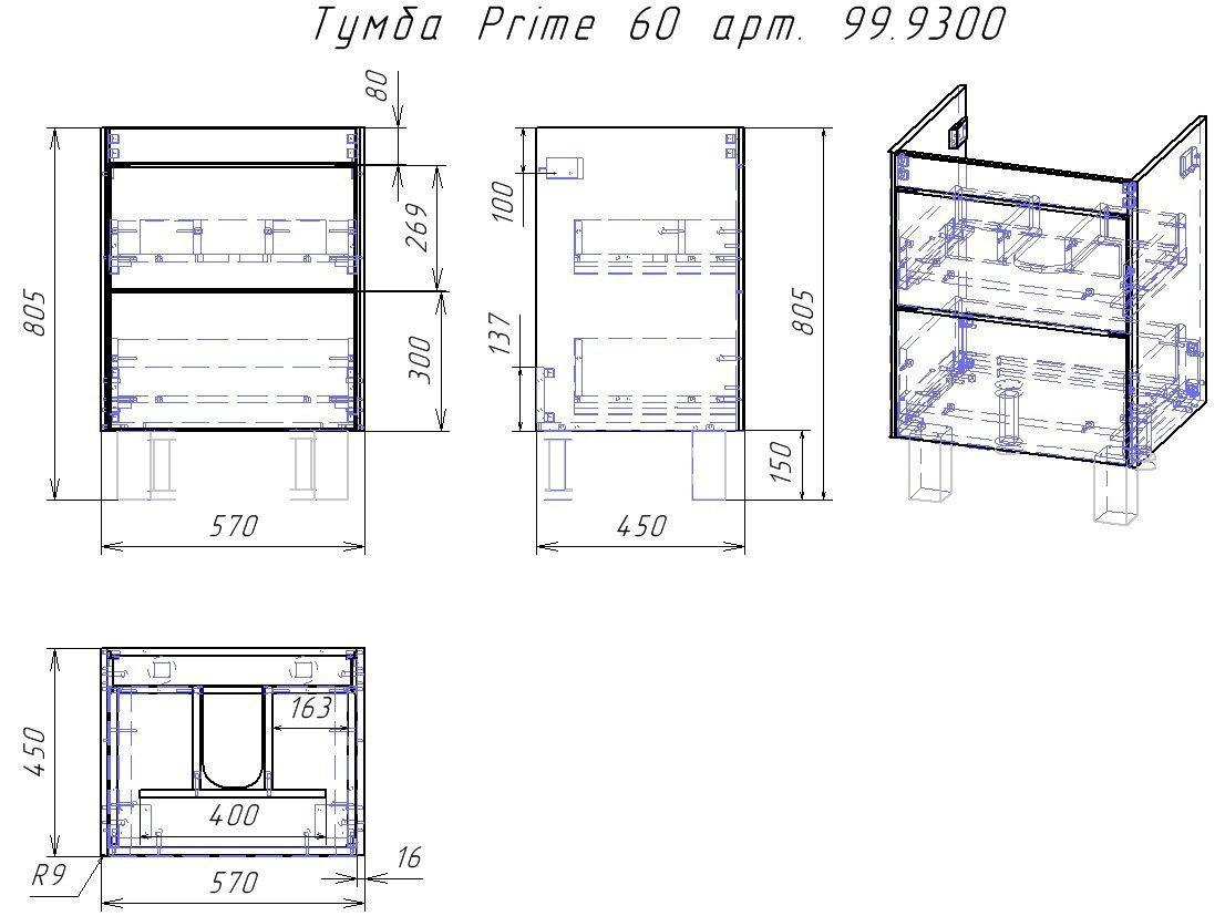 | Название: | Тумба PRIME, 60 см, подвесная/напольная, 2 ящика, белый глянец | ||