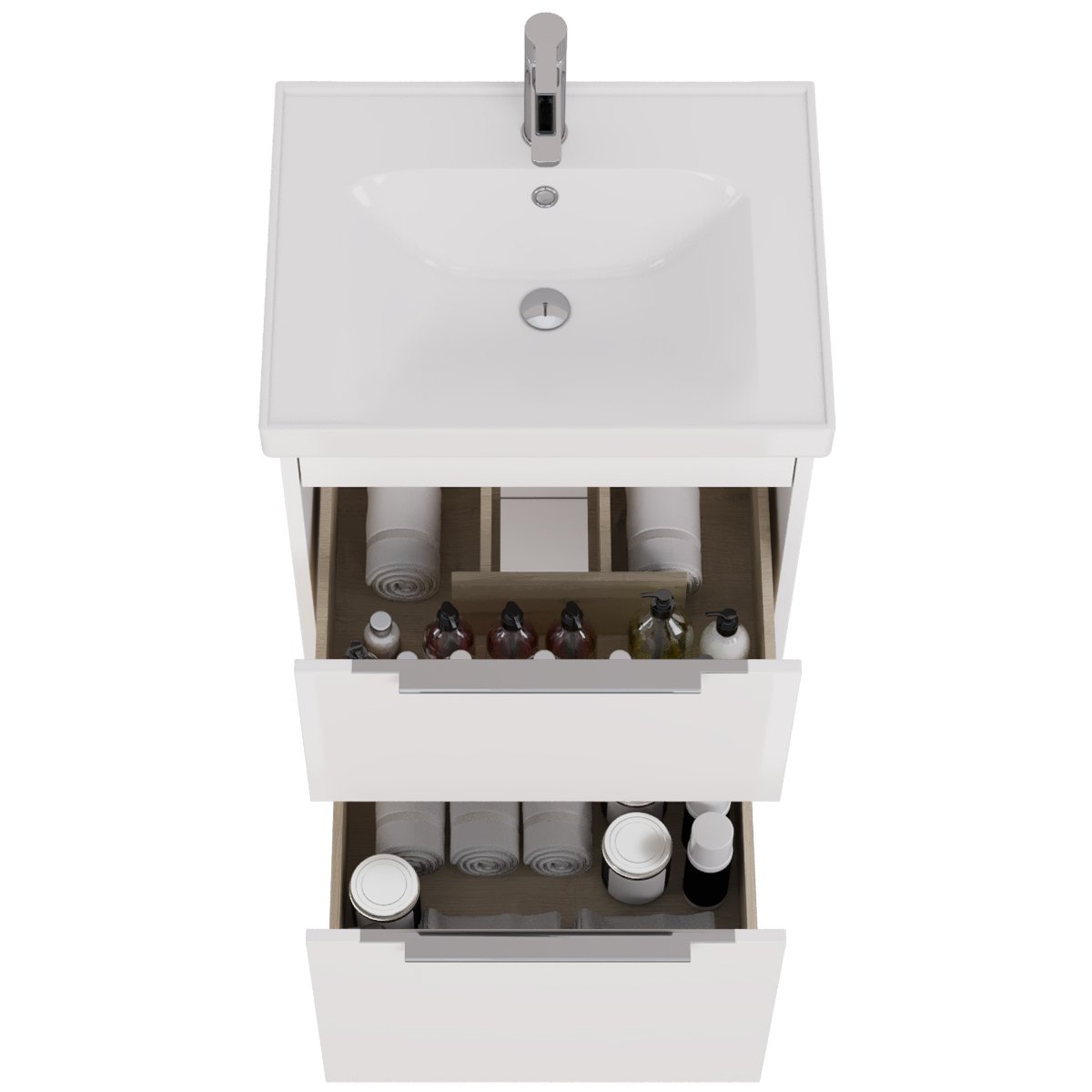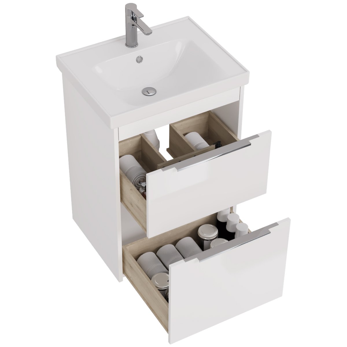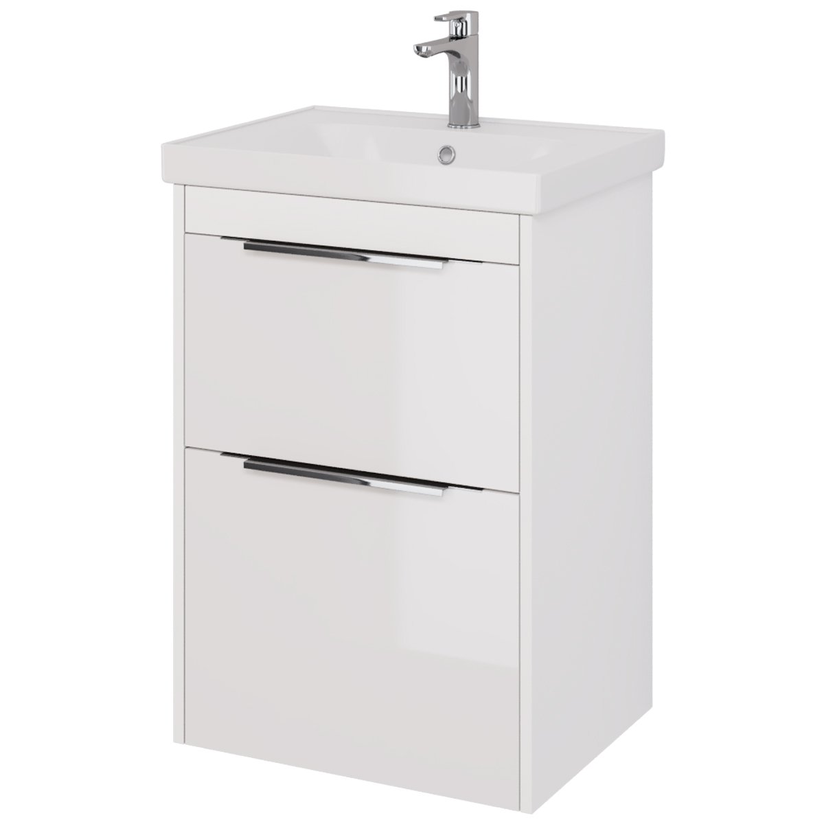 Тумба PRIME, 60 см, подвесная/напольная, 2 ящика, белый глянец