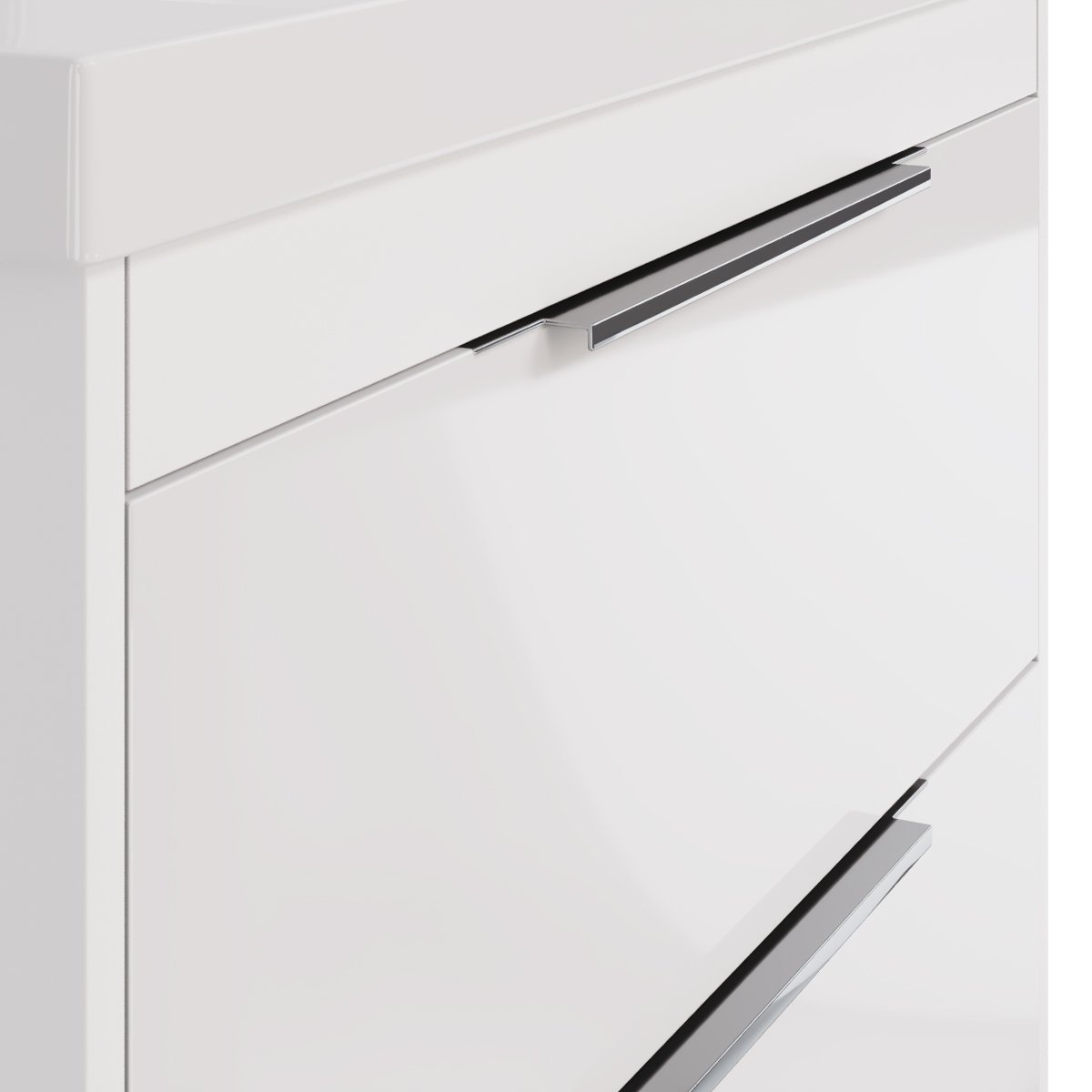 Тумба PRIME, 90 см, подвесная/напольная, 2 ящика, белый глянец