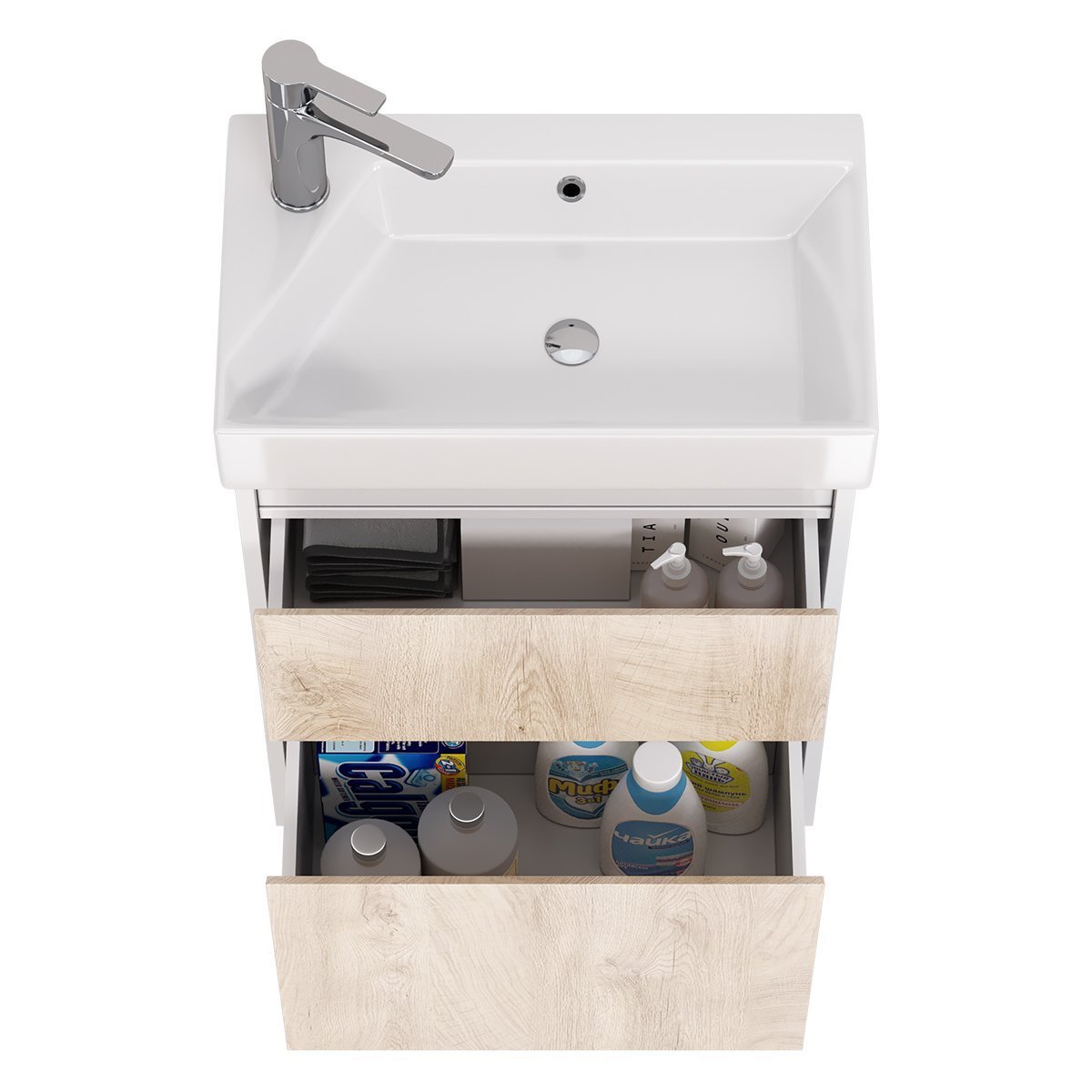 Тумба SLIM, 55 см, подвесная/напольная, 2 ящика, дуб кантри/белый глянец