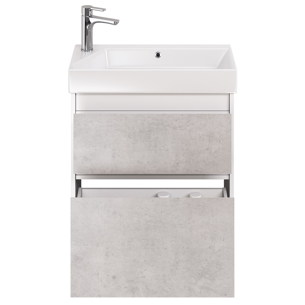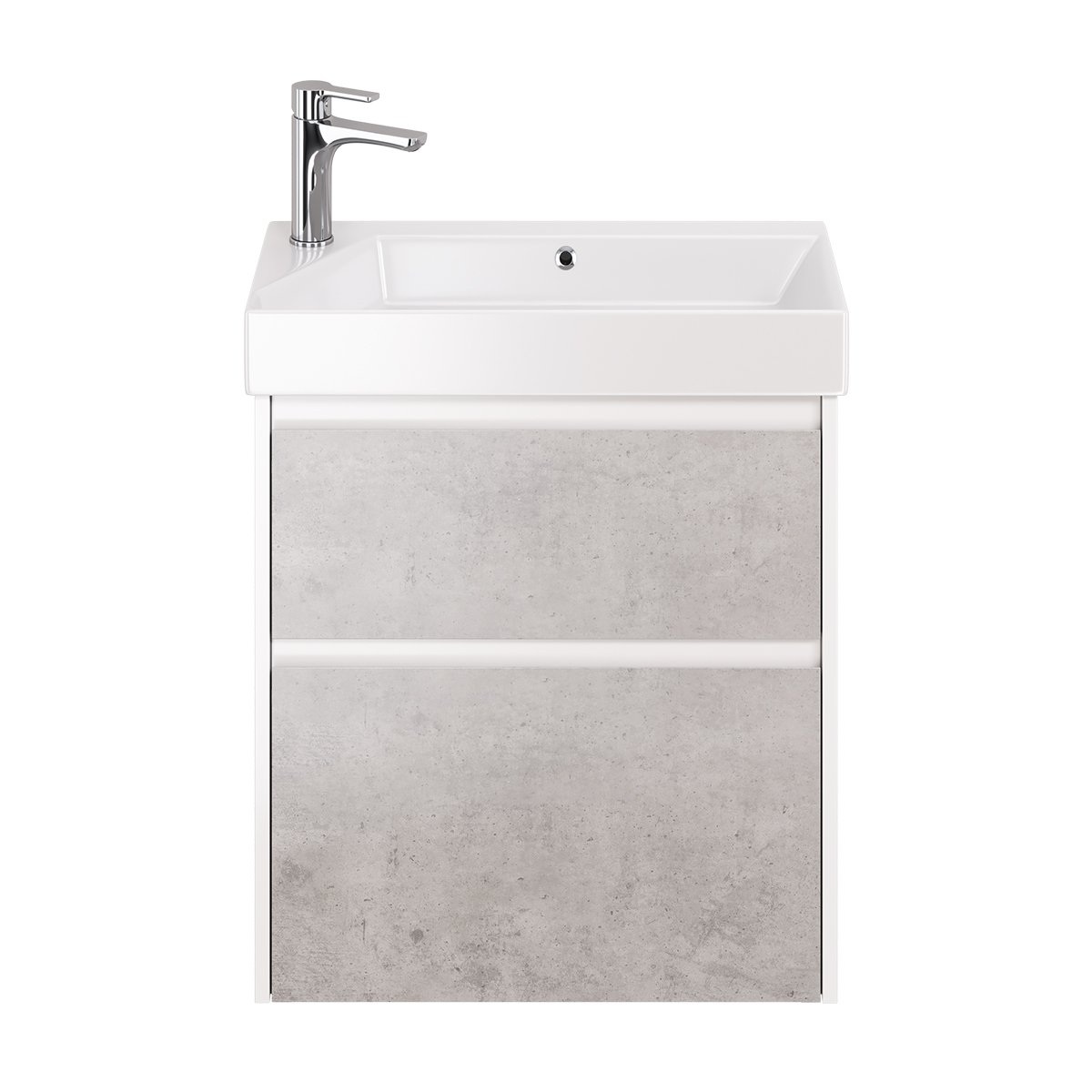 Тумба SLIM, 55 см, подвесная/напольная, 2 ящика, бетон/белый глянец