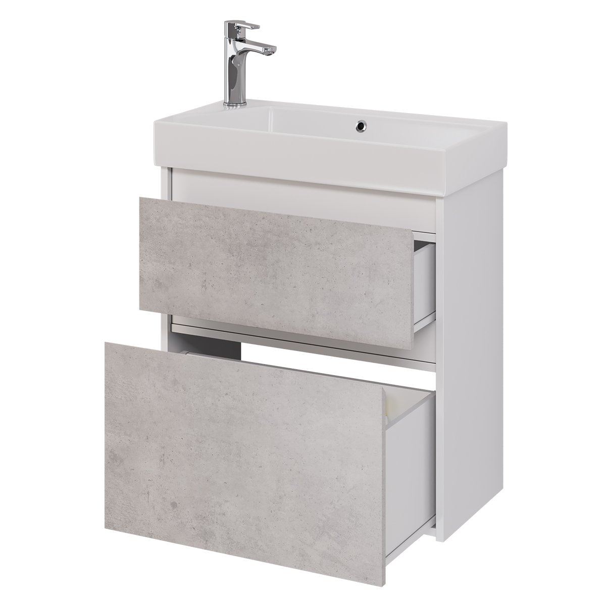 Тумба SLIM, 65 см, подвесная/напольная, 2 ящика, бетон/белый глянец