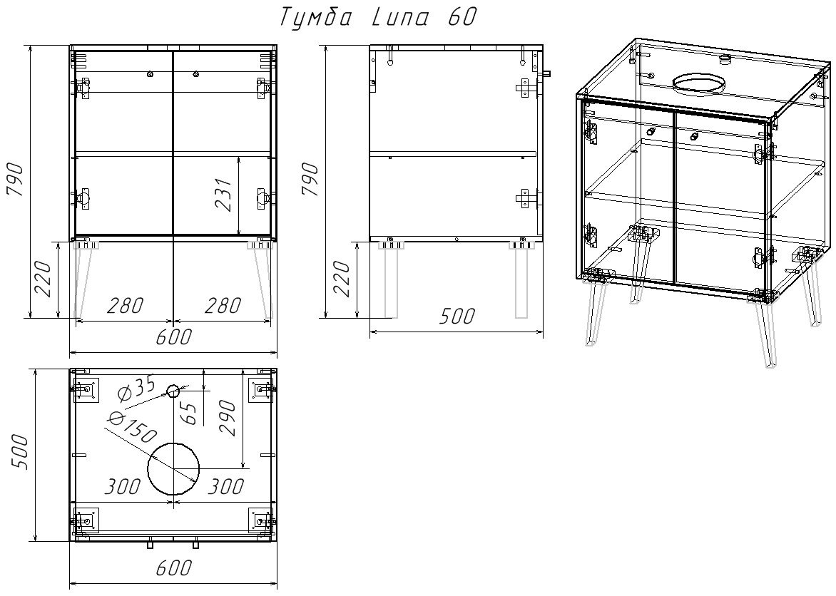 | Название: | Тумба LUNO, 60 см, напольная, 2 дверцы, белый глянец, под умывальник Триумф | ||