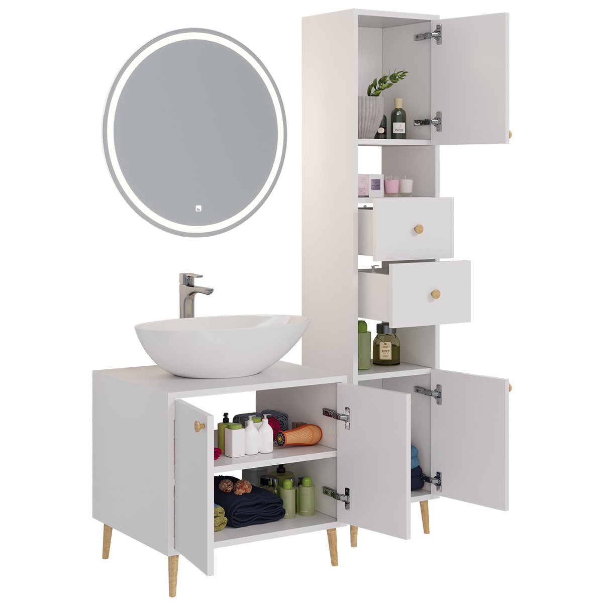 Тумба LUNO, 80 см, напольная, 1 дверца, 2 открытые полки, белый глянец, под умывальник Триумф