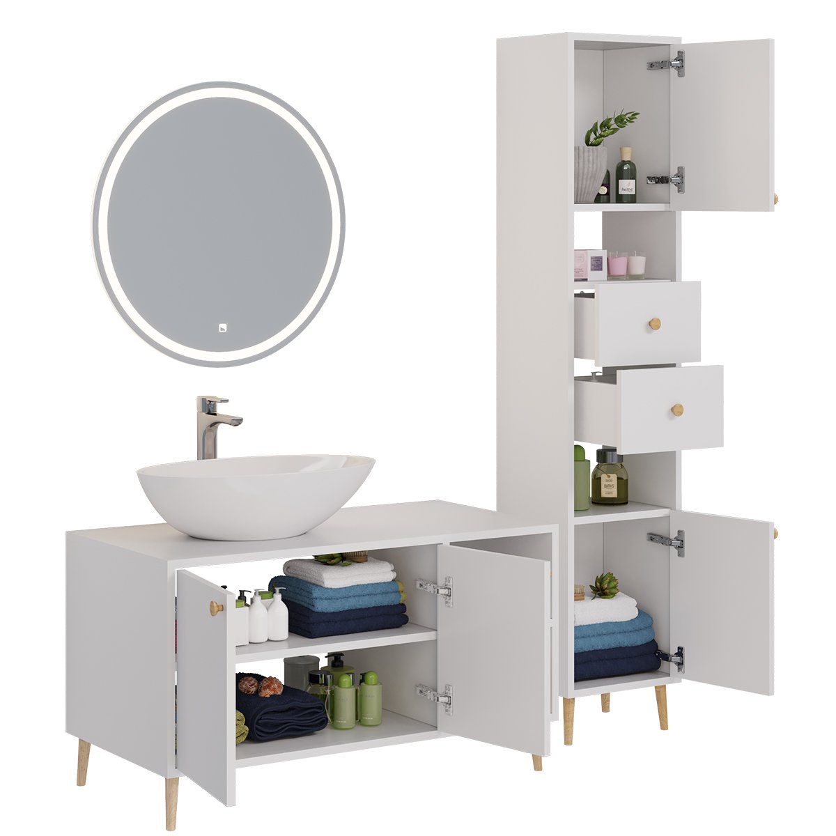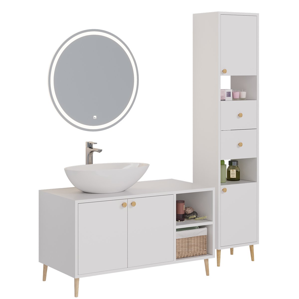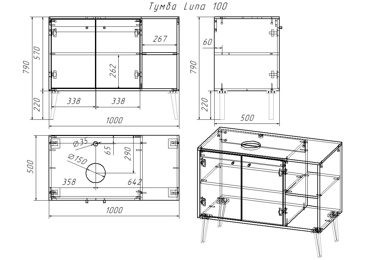 | Название: | Тумба LUNO, 100 см, напольная, 2 дверцы, 2 открытые полки, белый глянец, под умывальник Триумф | ||