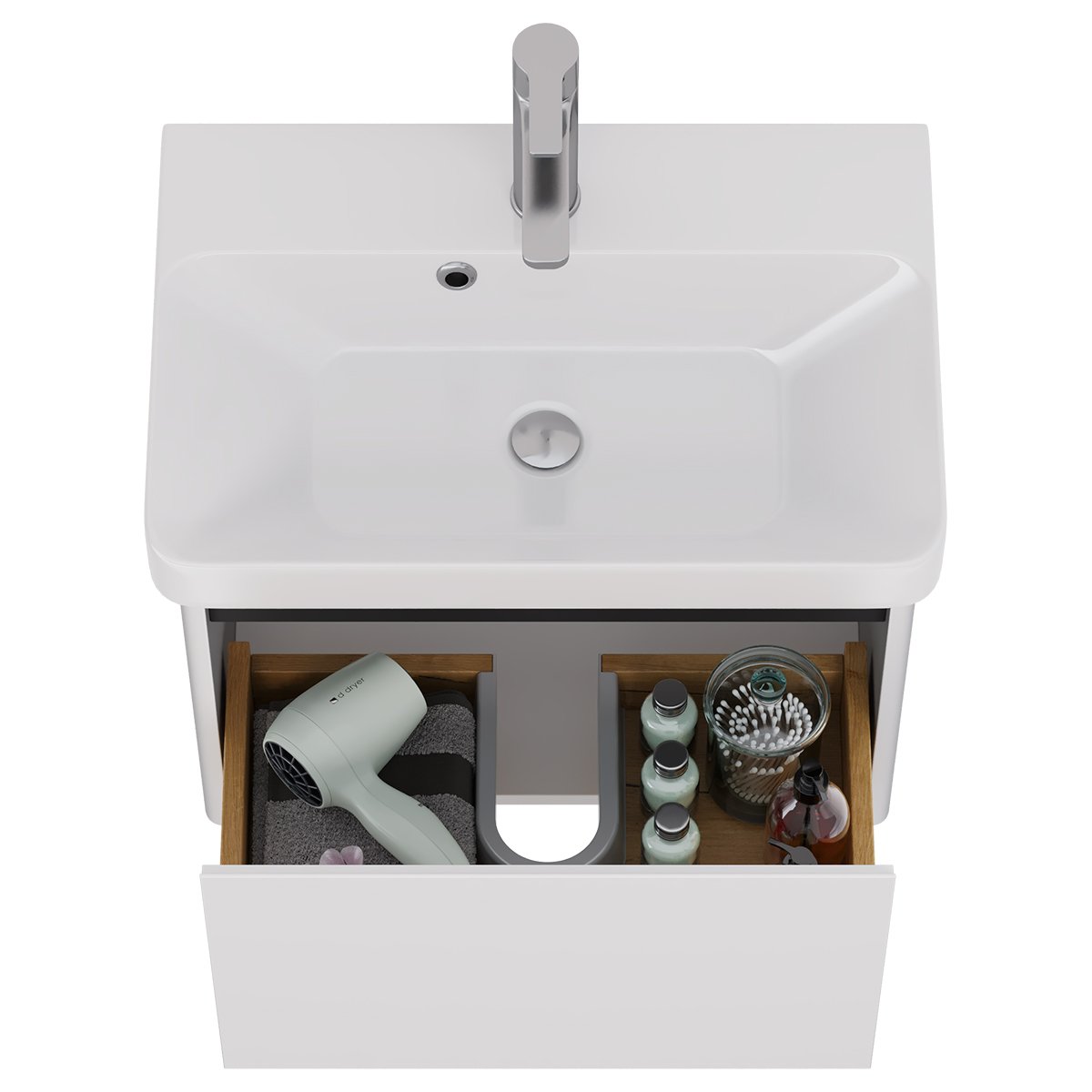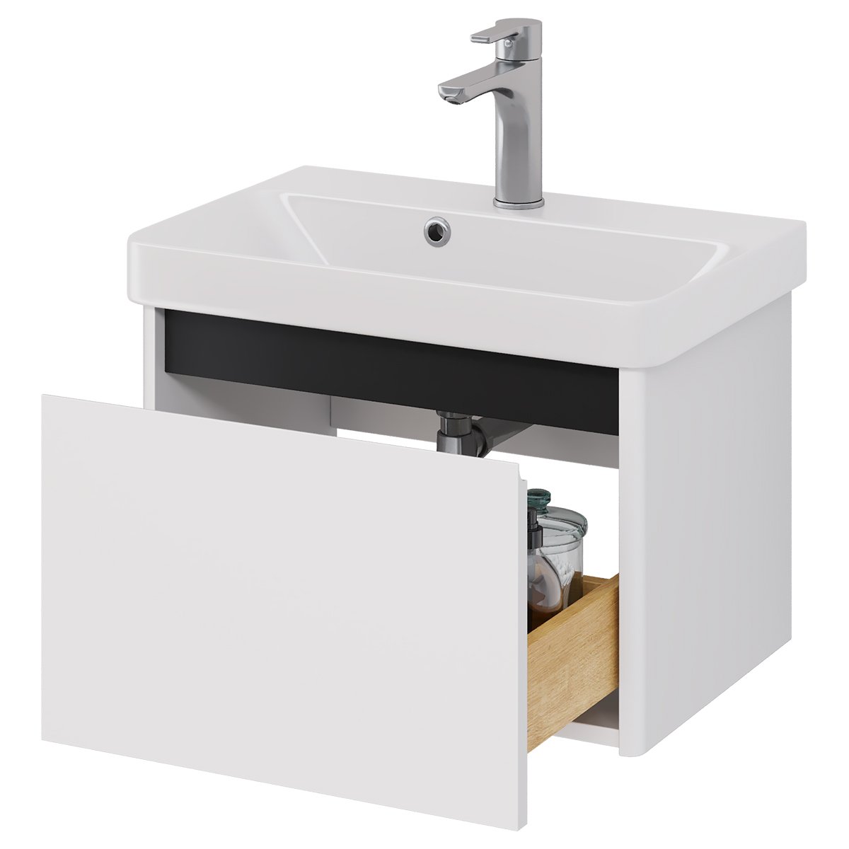 Тумба LUXURY, 55 см, подвесная, 1 ящик, матовый белый, под умывальник Luxury