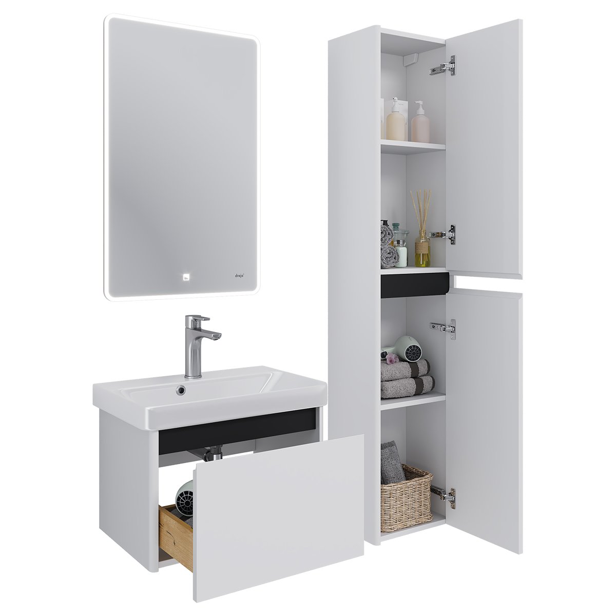 Тумба LUXURY, 70 см, подвесная, 1 ящик, матовый белый, под умывальник Luxury