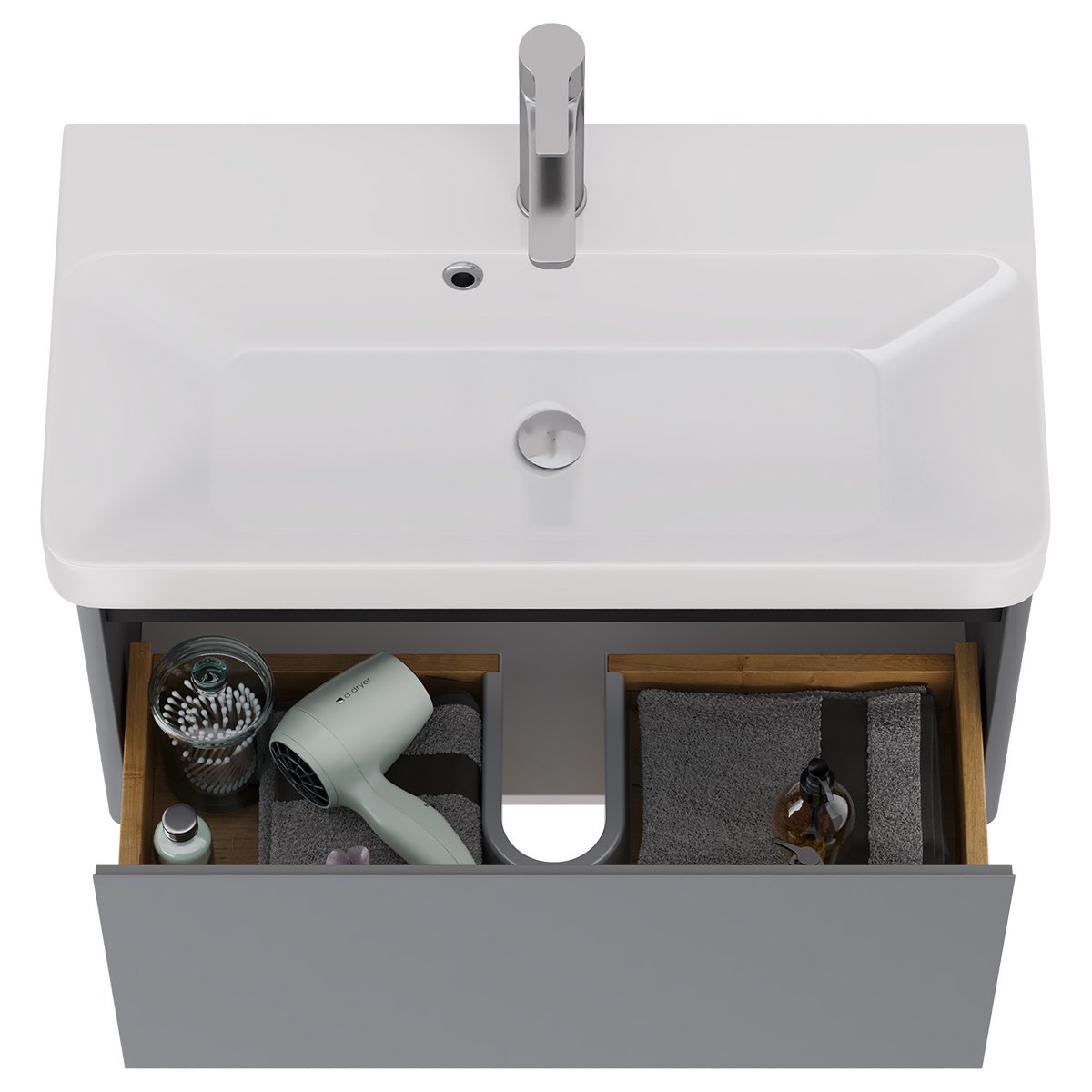 Тумба LUXURY, 70 см, подвесная, 1 ящик, серый базальт, под умывальник Luxury