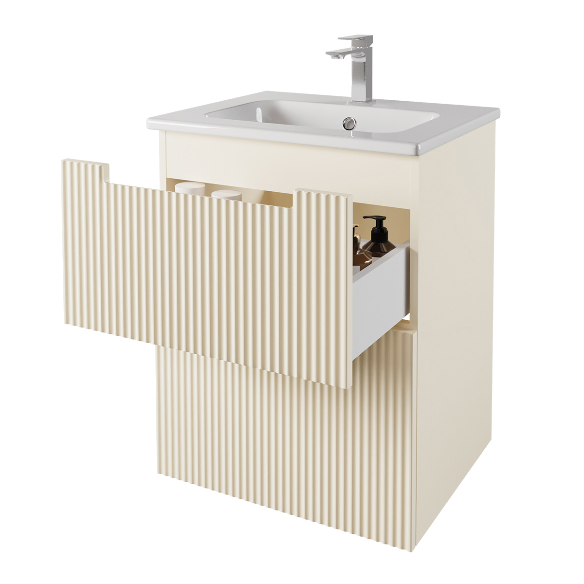 Тумба EUPHORIA, 60 см, подвесная/напольная, 2 ящика, матовый бежевый, под умывальник Euphoria