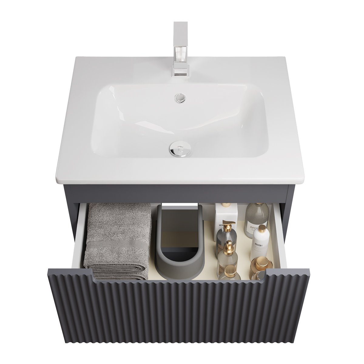 Тумба EUPHORIAТумба EUPHORIA, 60 см, подвесная/напольная, 2 ящика, серый базальт, под умывальник Euphoria