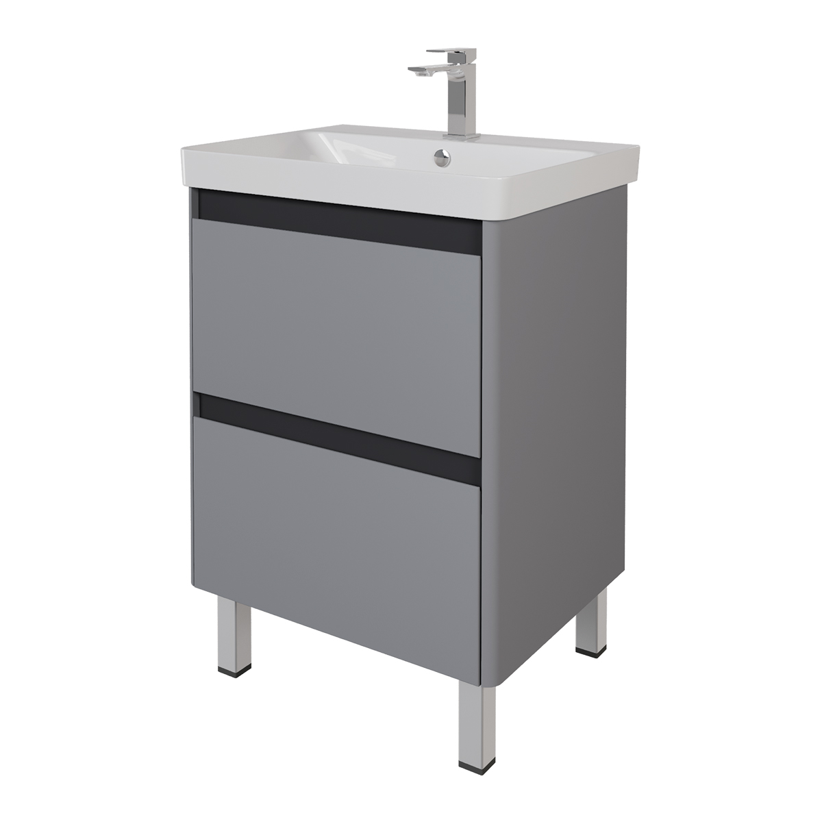 Тумба LUXURY PLUS, 60 см, подвесная/напольная, 2 ящика, с опорами, серый базальт, под умывальник Luxury