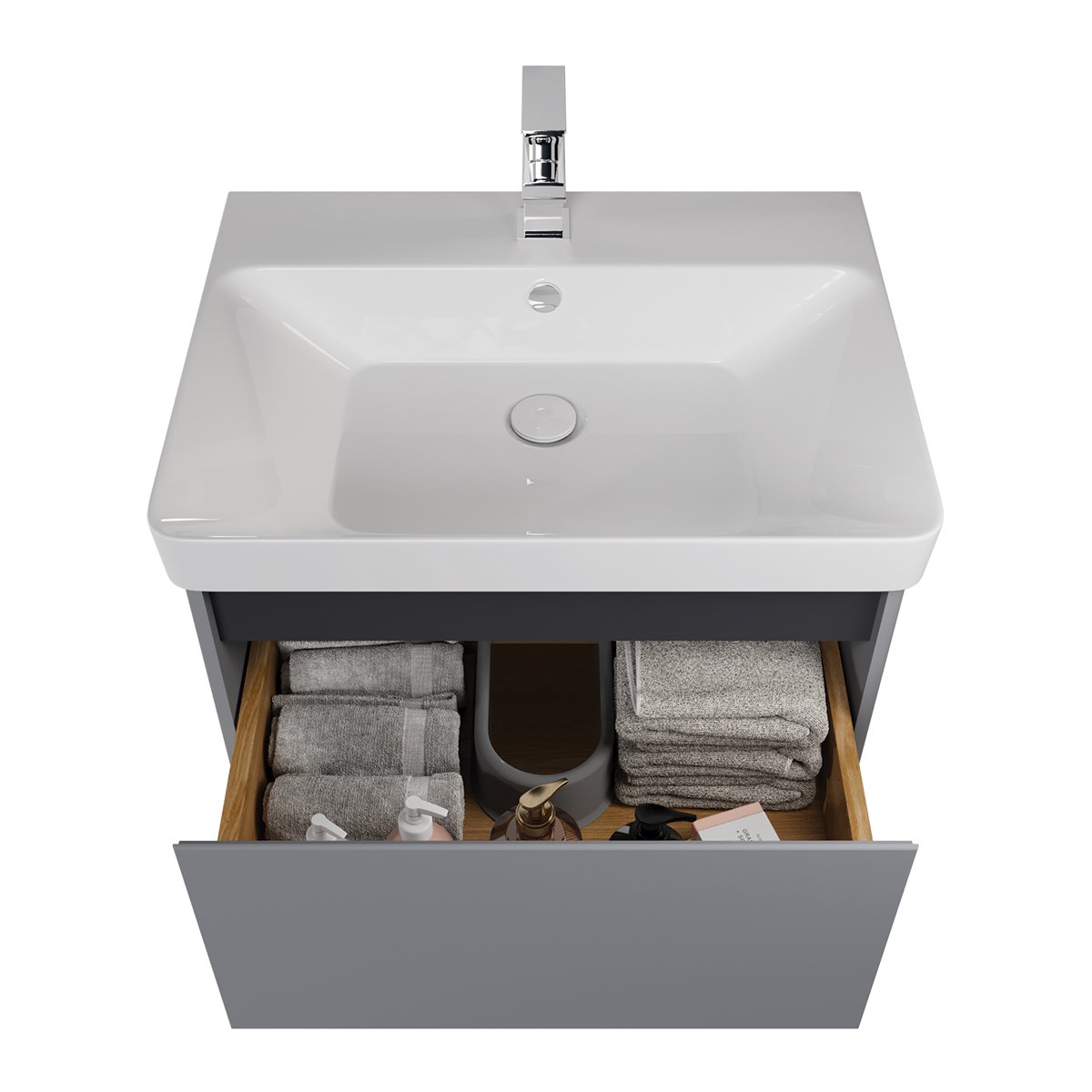 Тумба LUXURY PLUS, 60 см, подвесная/напольная, 2 ящика, с опорами, серый базальт, под умывальник Luxury