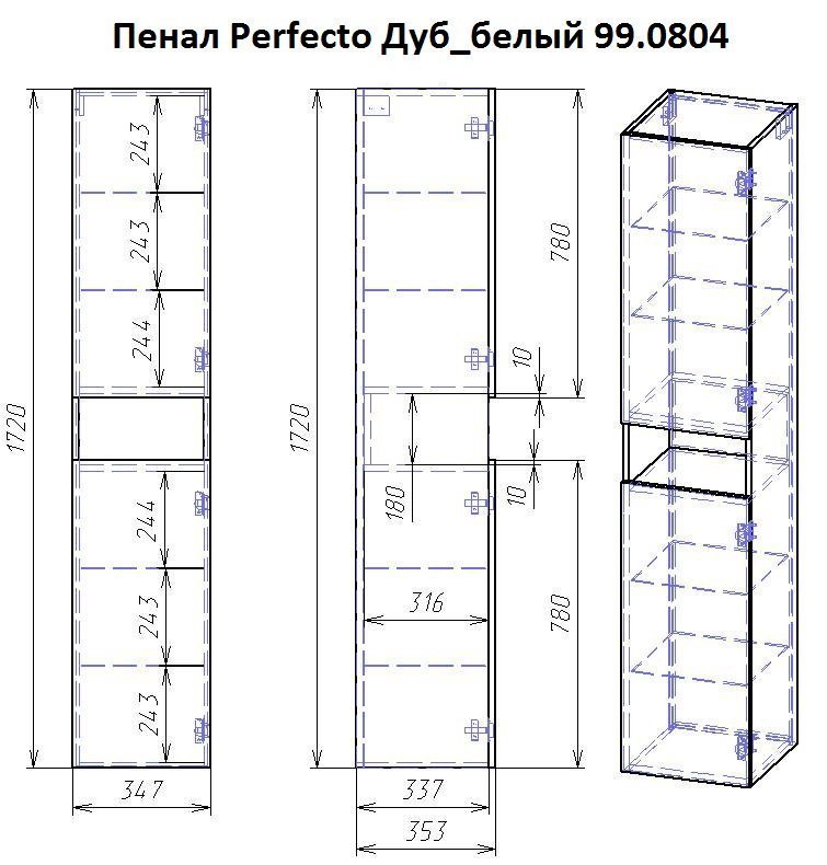 | Название: | Пенал PERFECTO, 35 см, подвесной/напольный, универсальный, 2 дверцы, push-to-open, 4 стеклянные полки, белый глянец | ||