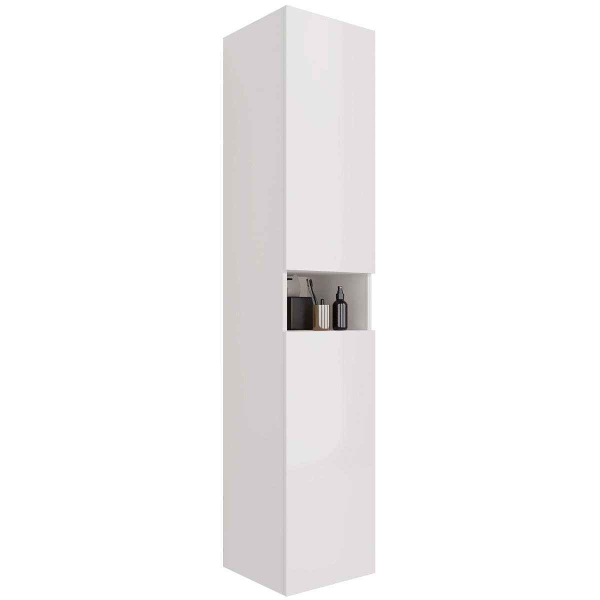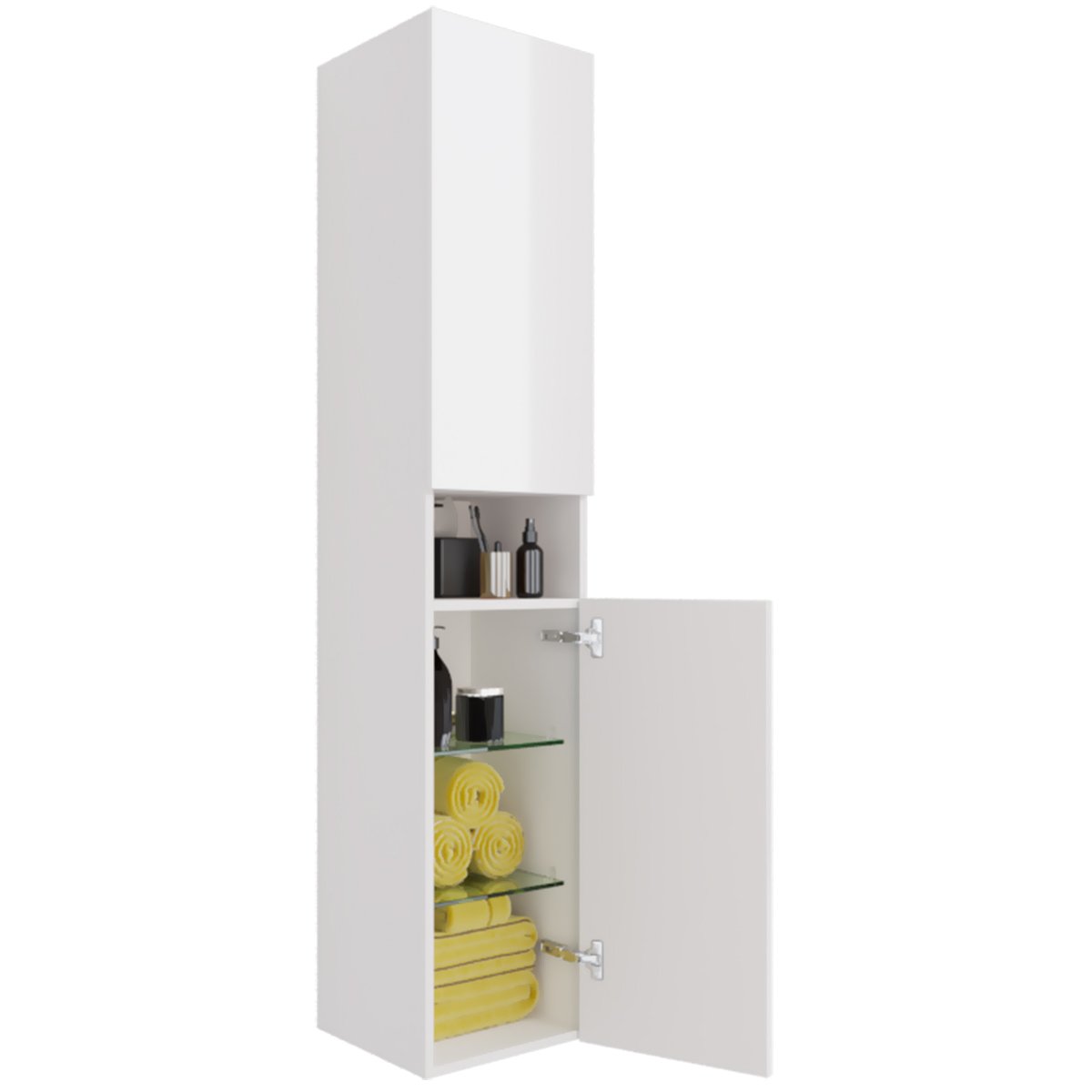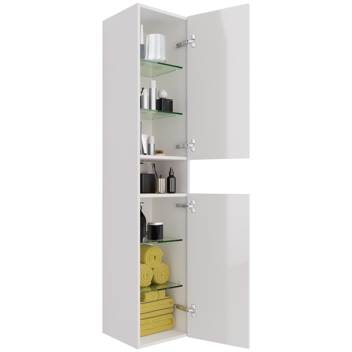 Пенал PERFECTO, 35 см, подвесной/напольный, универсальный, 2 дверцы, push-to-open, 4 стеклянные полки, белый глянец