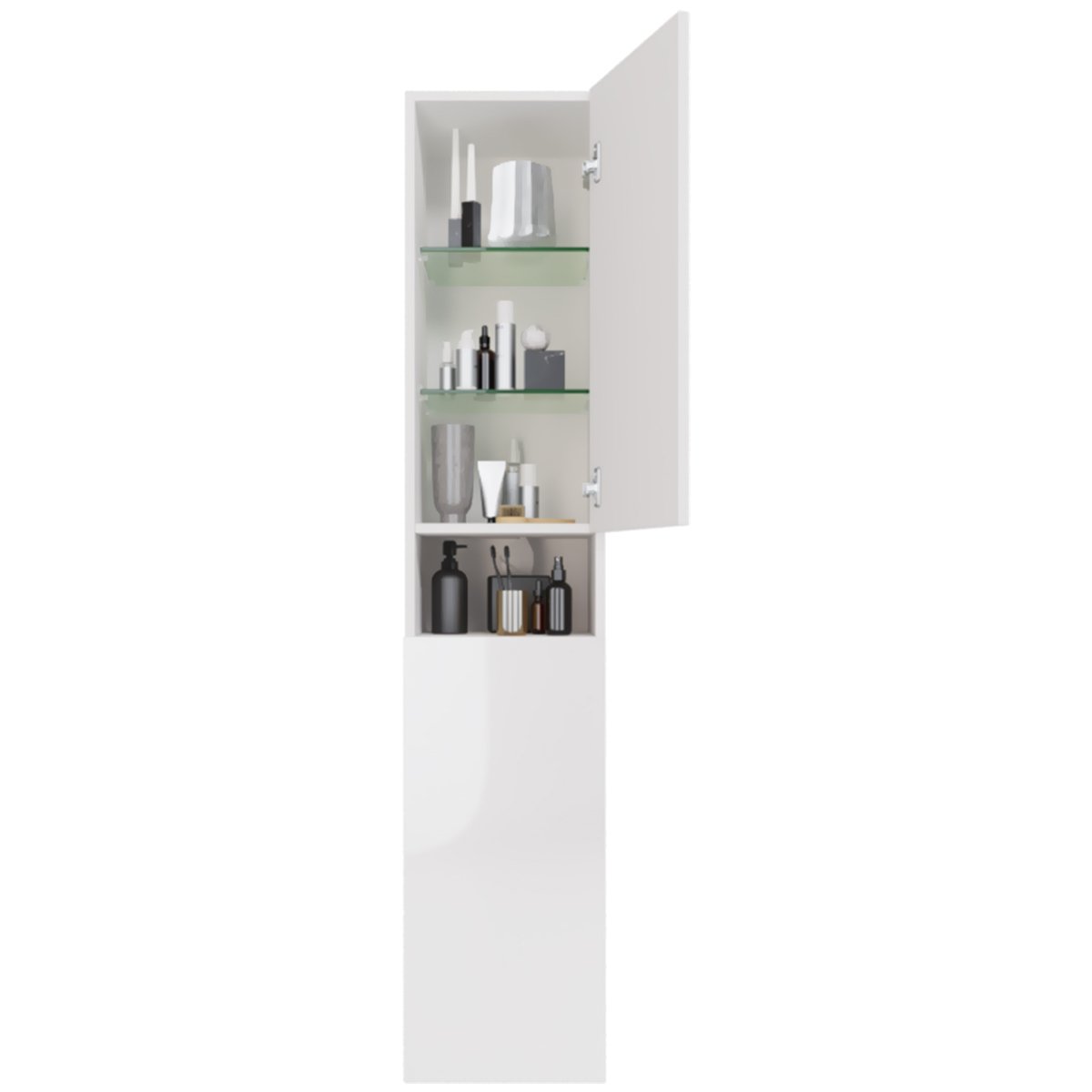Полупенал PERFECTO, 35 см, подвесной, правый, 1 дверца, push-to-open, 1 стеклянная полка, белый глянец