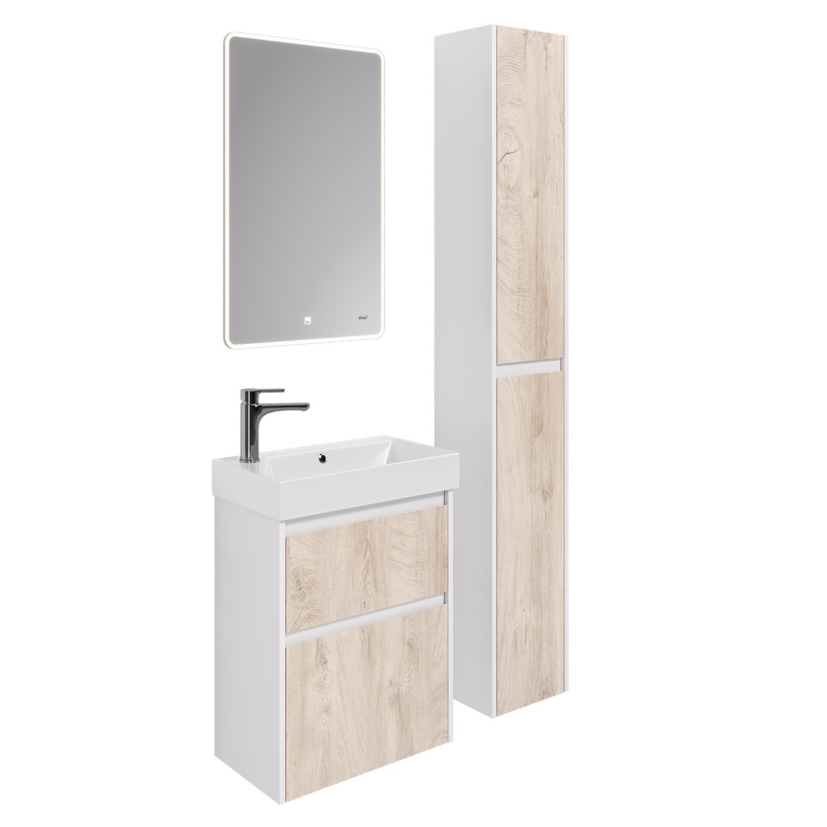 Тумба SLIM, 55 см, подвесная/напольная, 2 ящика, дуб кантри/белый глянец