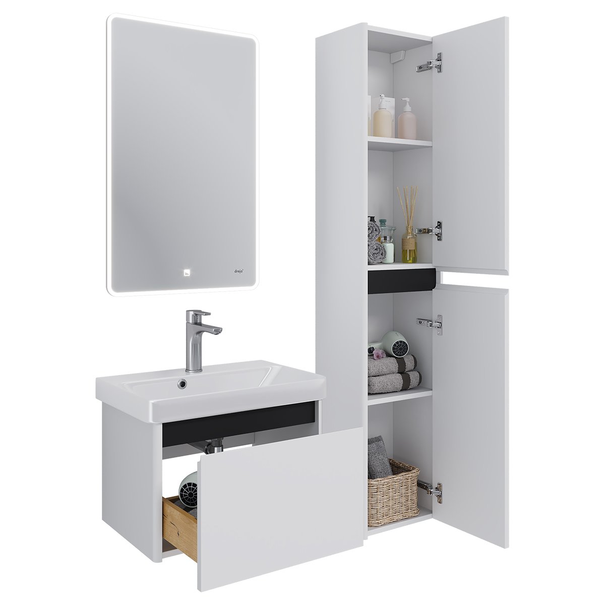 Тумба LUXURY, 70 см, подвесная, 1 ящик, матовый белый, под умывальник Luxury