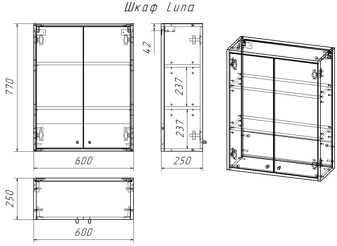 | Название: | Шкаф LUNO, 60 см, подвесной, универсальный, 2 дверцы, белый глянец | ||