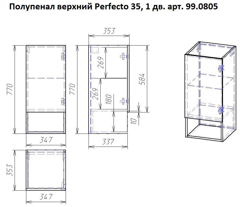 | Название: | Полупенал PERFECTO, 35 см, подвесной, универсальный, 1 дверца, 1 стеклянная полка, дуб эврика/белый глянец | ||