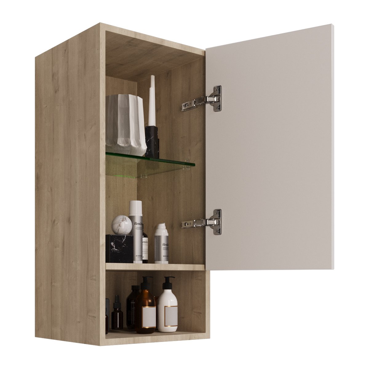 Полупенал PERFECTO, 35 см, подвесной, универсальный, 1 дверца, 1 стеклянная полка, дуб эврика/белый глянец