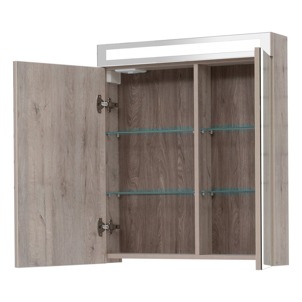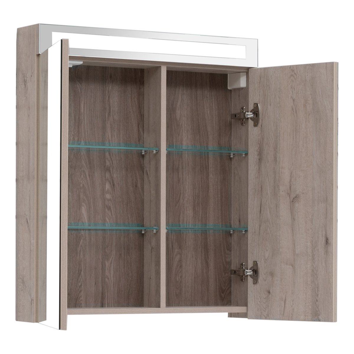 Шкаф зеркальный MAXШкаф зеркальный MAX, 70 см, 2 дверцы, 4 стеклянные полки, дуб кантри