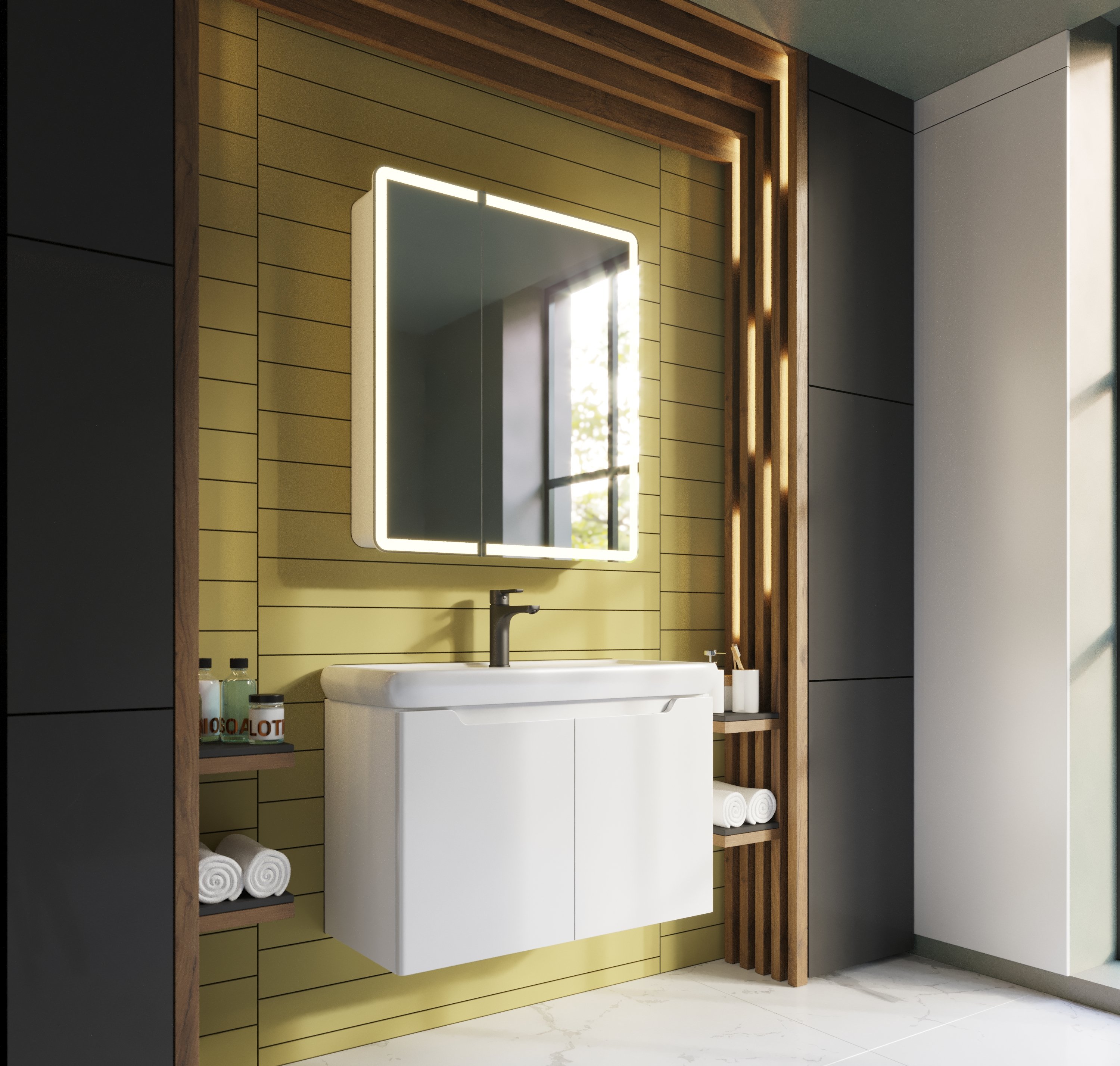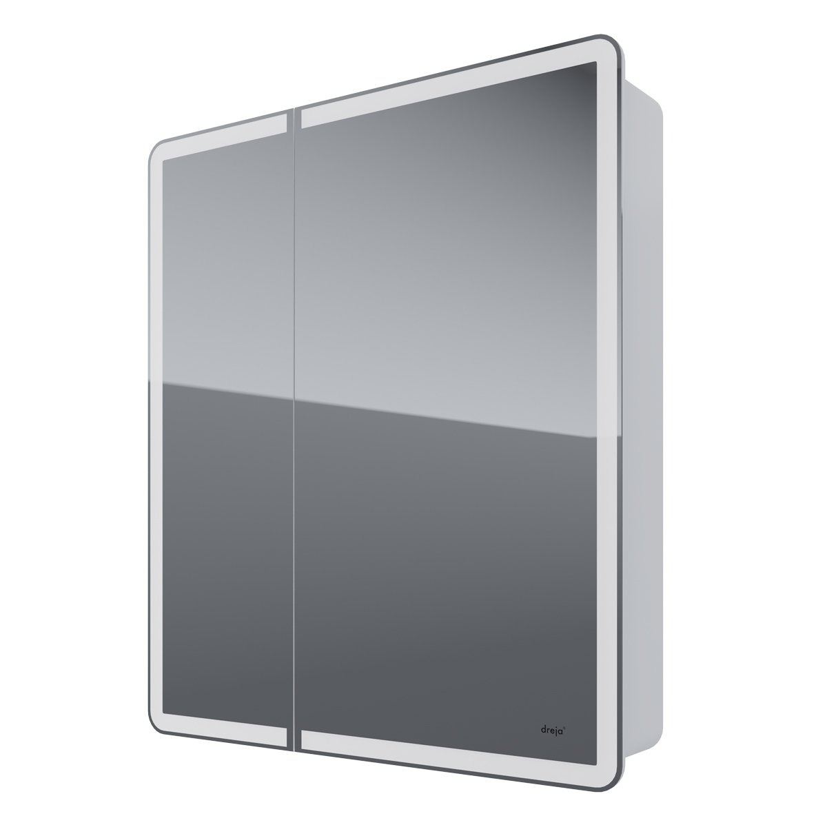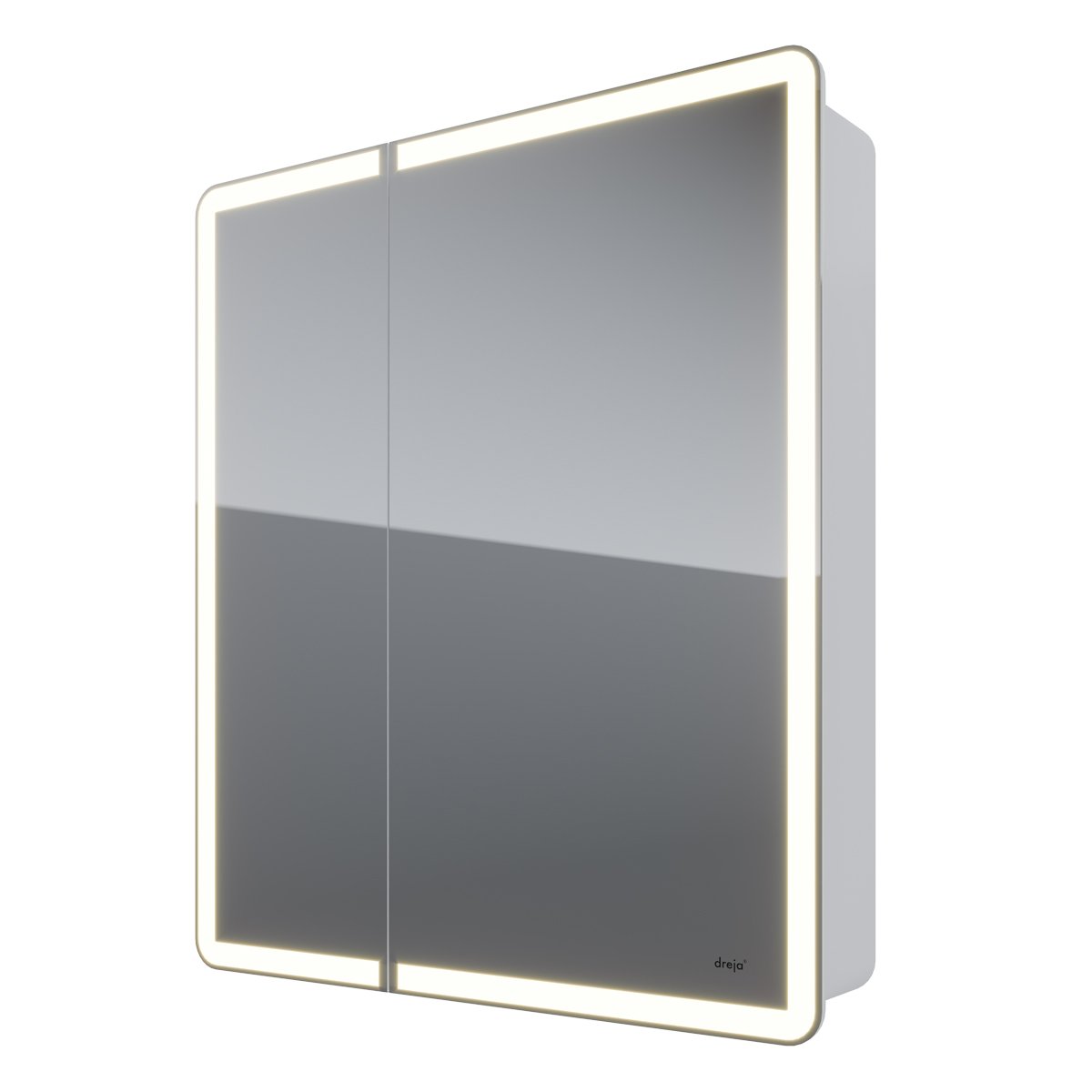 Шкаф зеркальный POINT, 80 см, 2 дверцы, 2 стеклянные полки, бесконтактный выключатель, LED-подсветка, электрическая розетка, белый