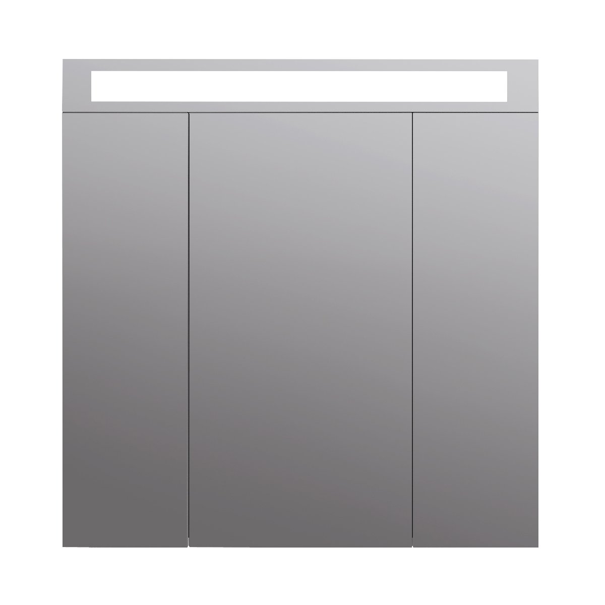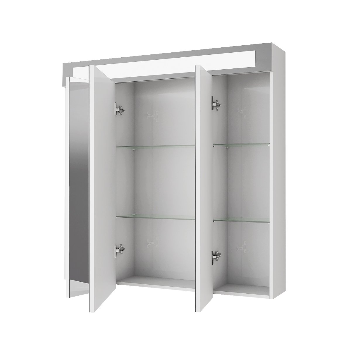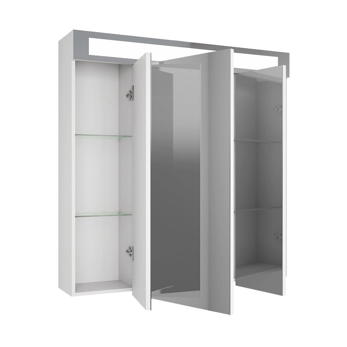 Шкаф зеркальный UNI, 80 см, 3 дверцы, 6 стеклянных полок, с подсветкой и выключателем, белый