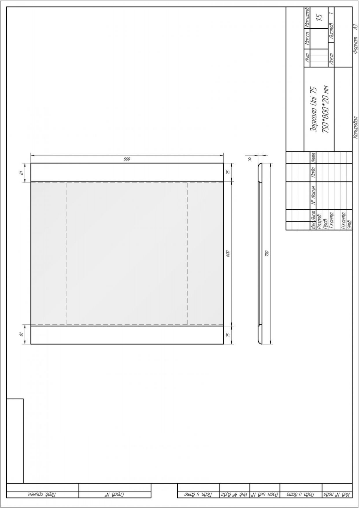 | Название: | Зеркало UNI, 75 см, без подсветки, белый | ||