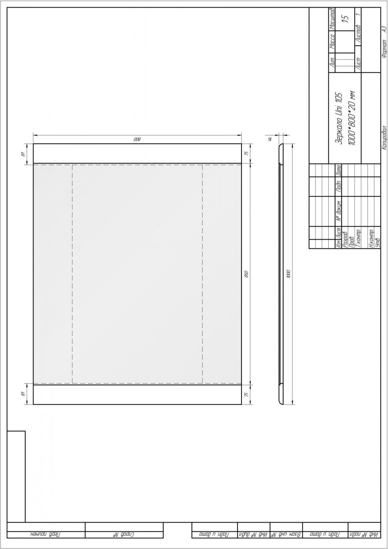 | Название: | Зеркало UNI, 105 см, без подсветки, белый | ||