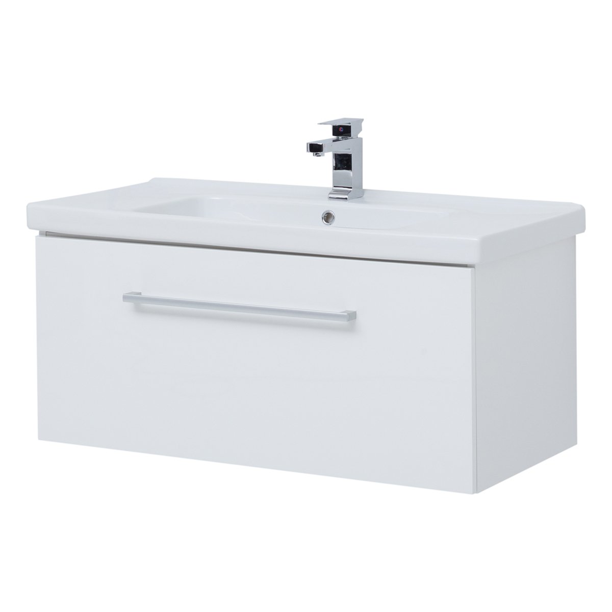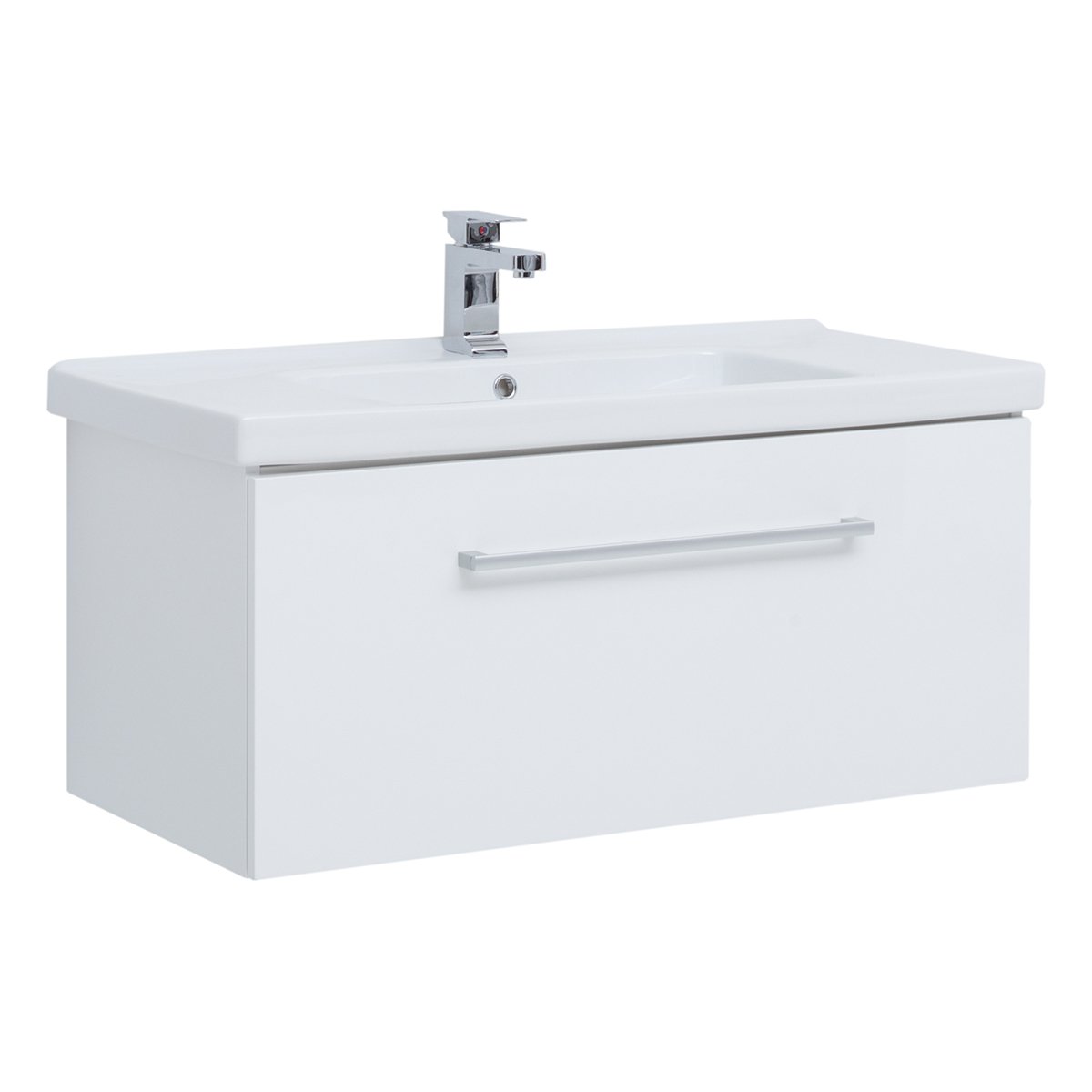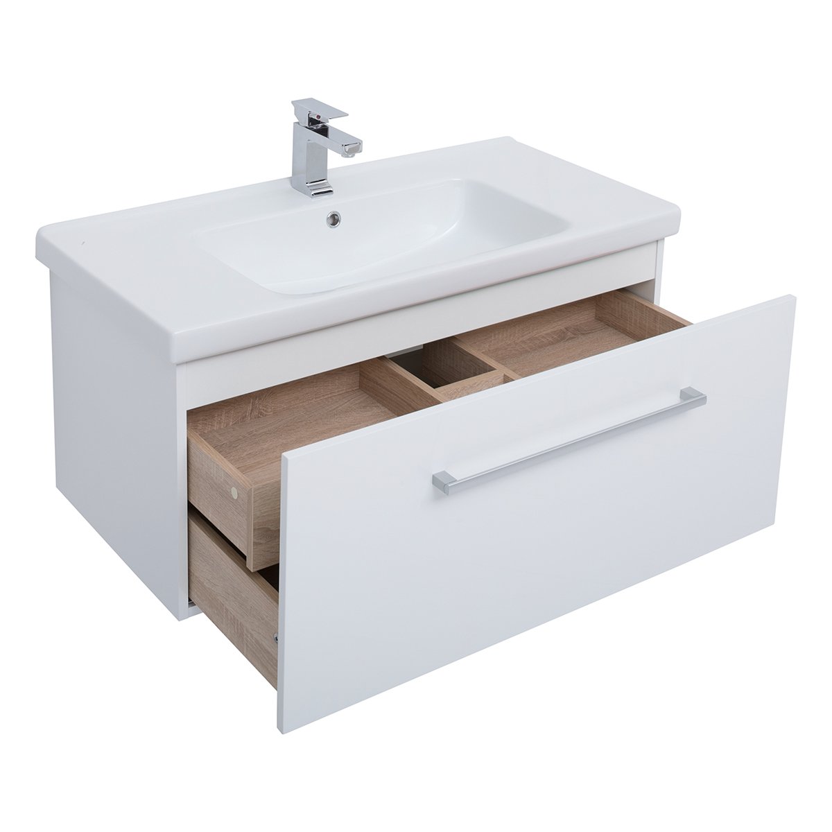 Тумба BIG INN, 80 см, подвесная, 1 ящик + выдвижной внутренний ящик, белый глянец