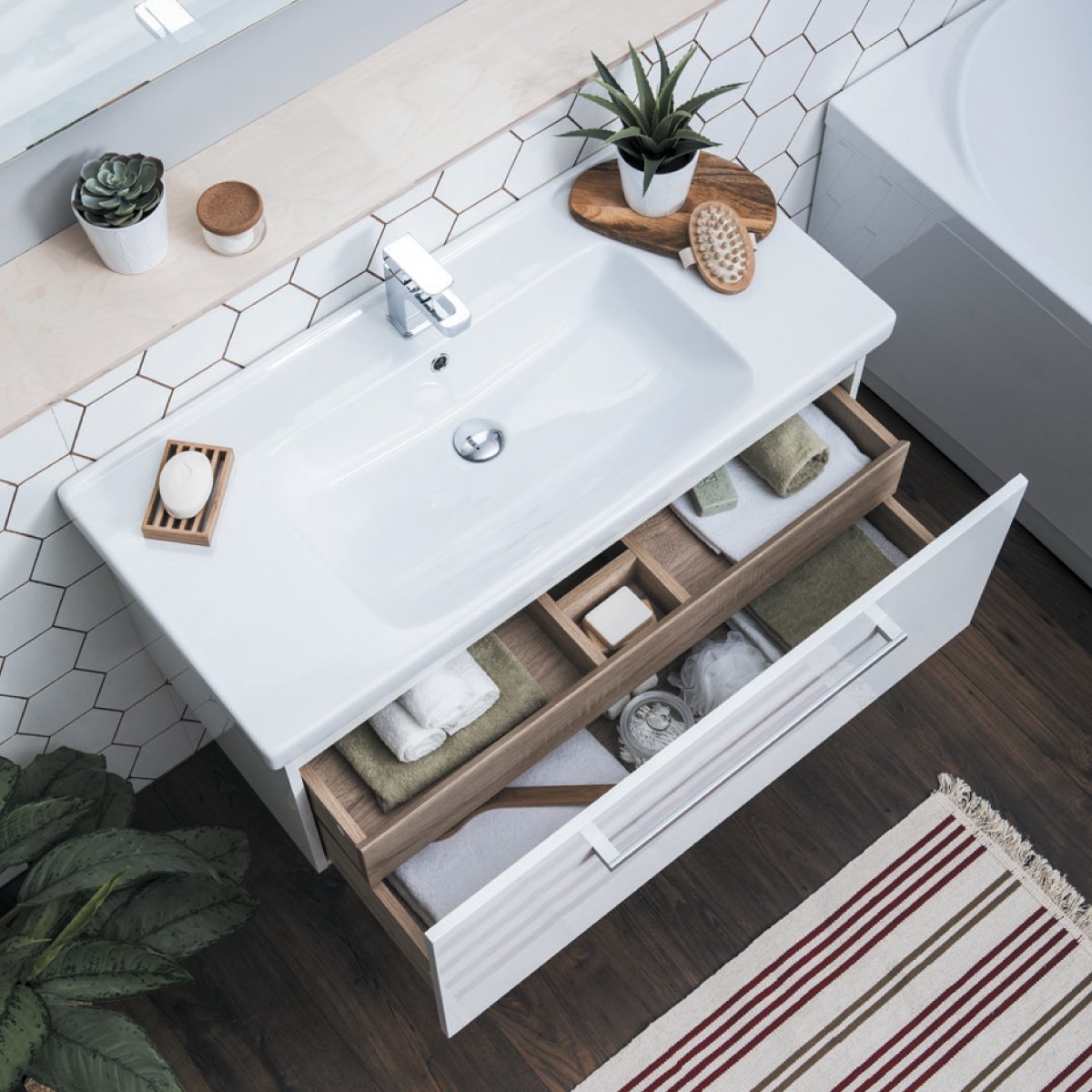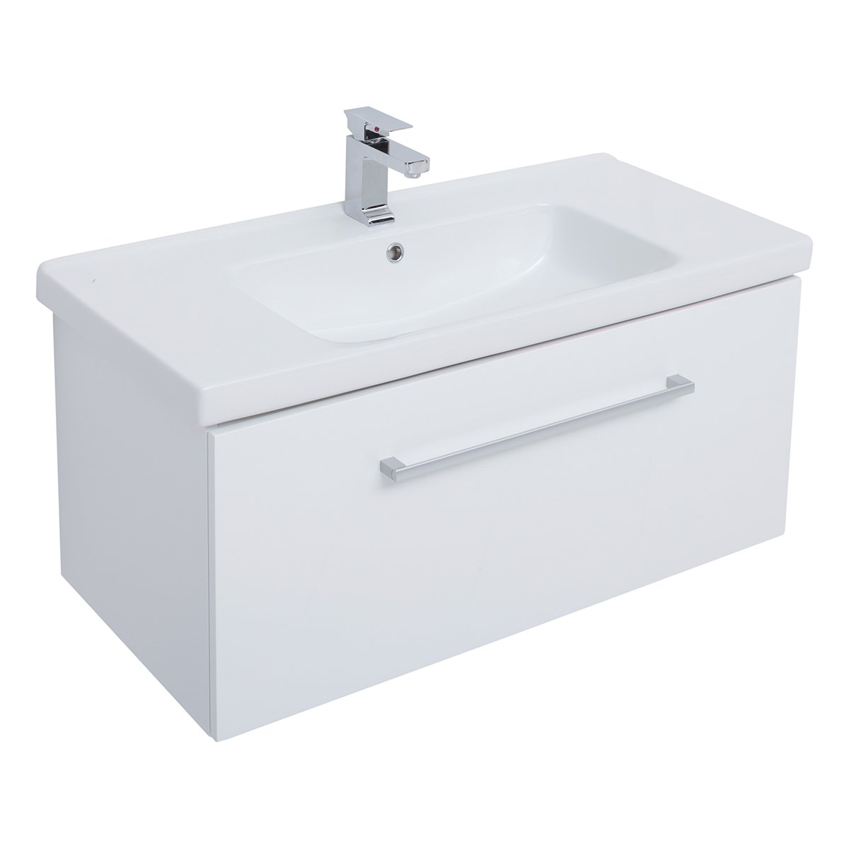 Тумба BIG INN, 100 см, подвесная, 1 ящик + выдвижной внутренний ящик, белый глянец