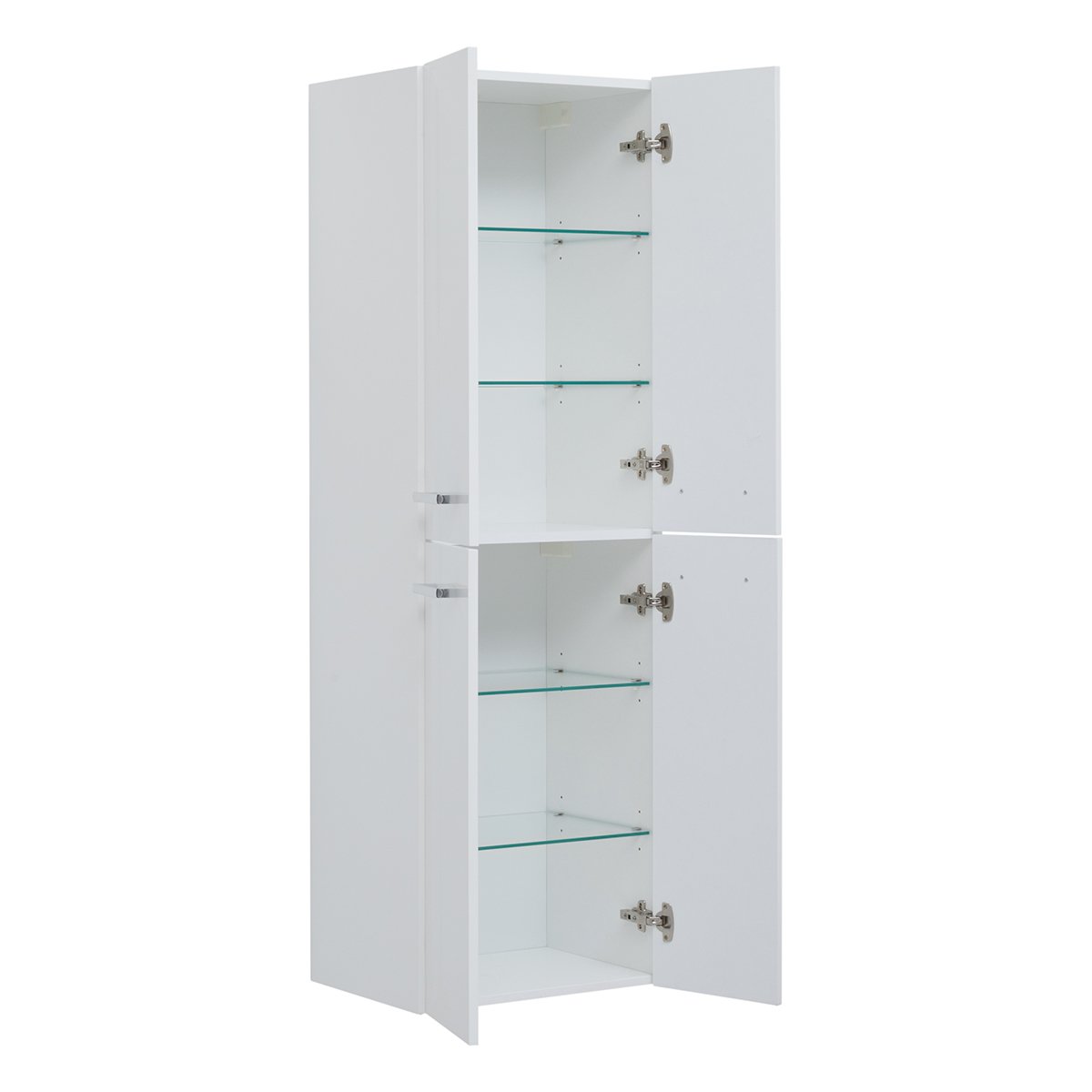 Пенал, 50 см, подвесной/напольный, универсальный, 4 дверцы, 4 стеклянные полки, белый глянец