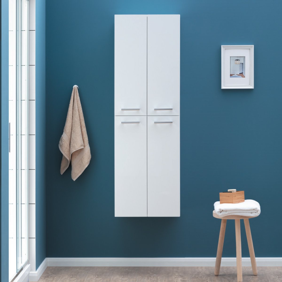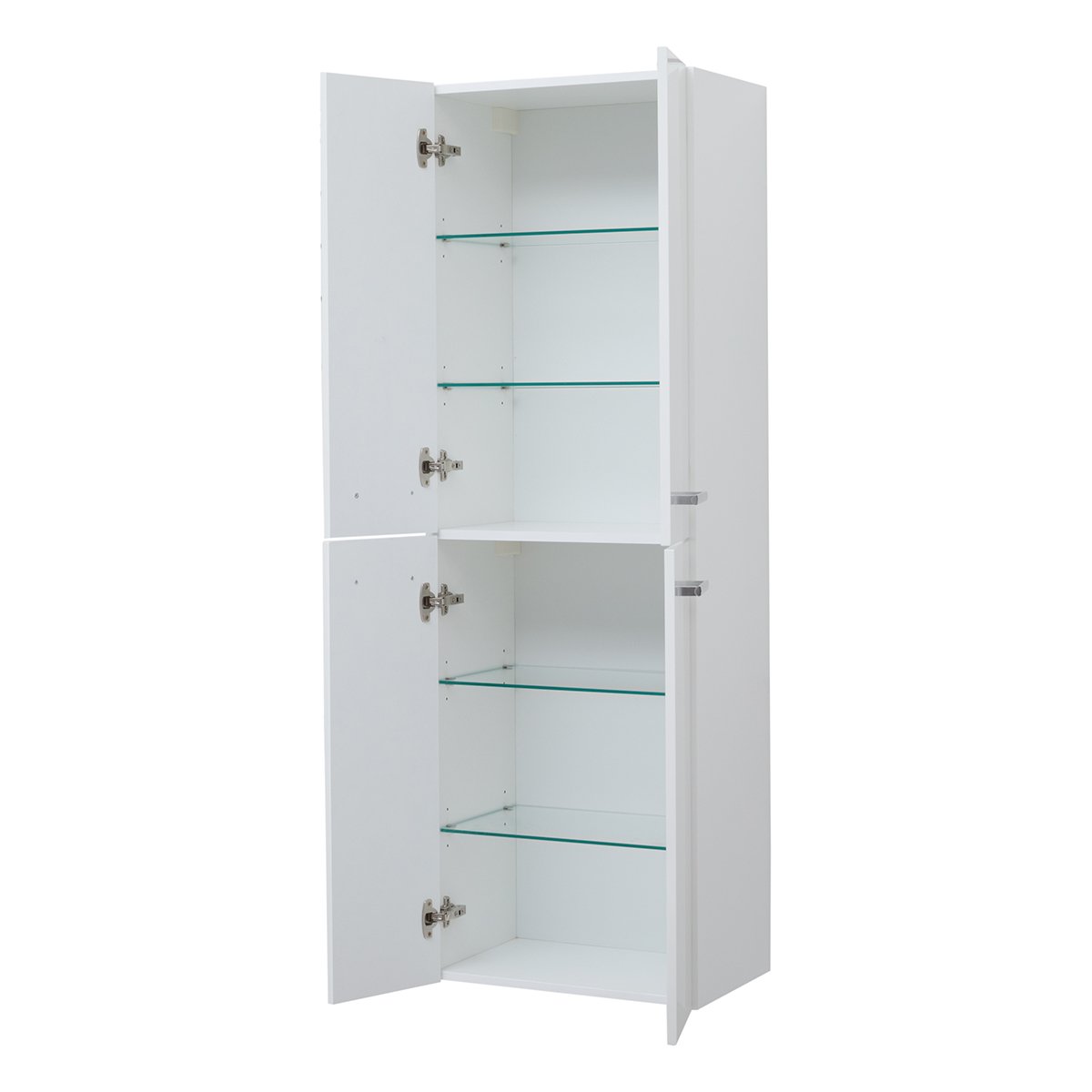 | Название: | Пенал, 50 см, подвесной/напольный, универсальный, 4 дверцы, 4 стеклянные полки, белый глянец | ||