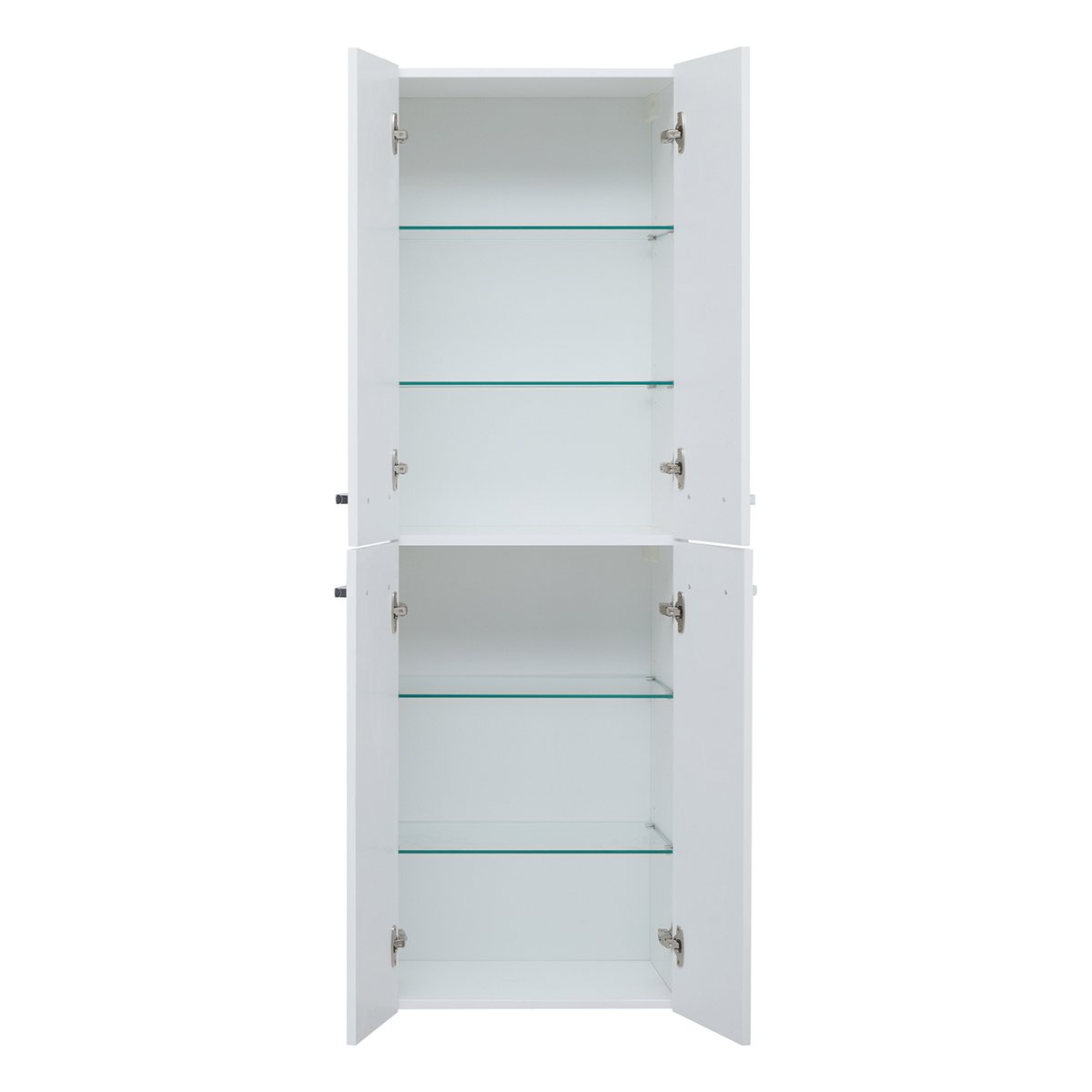 ПеналПенал, 50 см, подвесной/напольный, универсальный, 4 дверцы, 4 стеклянные полки, белый глянец